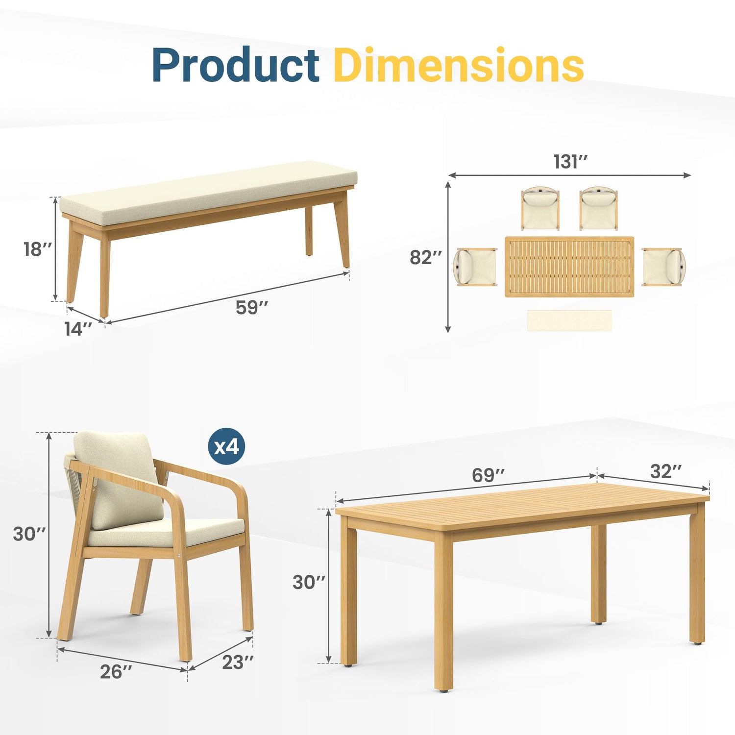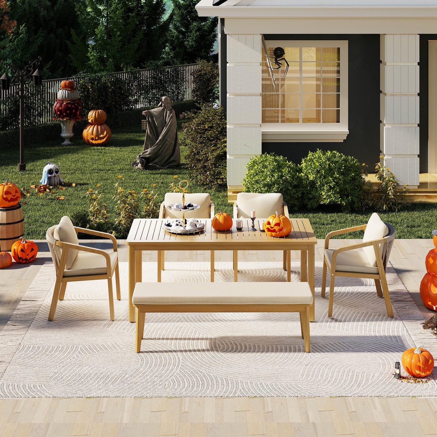 Wisteria Lane 6 Pieces Acacia Patio Dining Set for 6, Patio Dining Table and Chairs Set with Cushion, Modern Outdoor Dining Furniture Set for Lawn Backyard Garden Deck, Beige