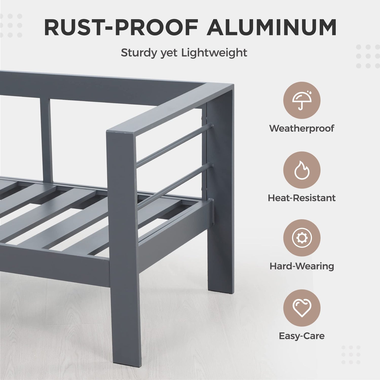 - 【RICH IN DETAILS】Fully welded, the deck furniture provides impact- and crack-resistant qualities. Durable welds and strong screws give our lawn furniture a solid frame and sturdy feel. Plus, the aluminum table and sofa legs are protected by plastic feet to prevent abrasion and sharp scrapes.