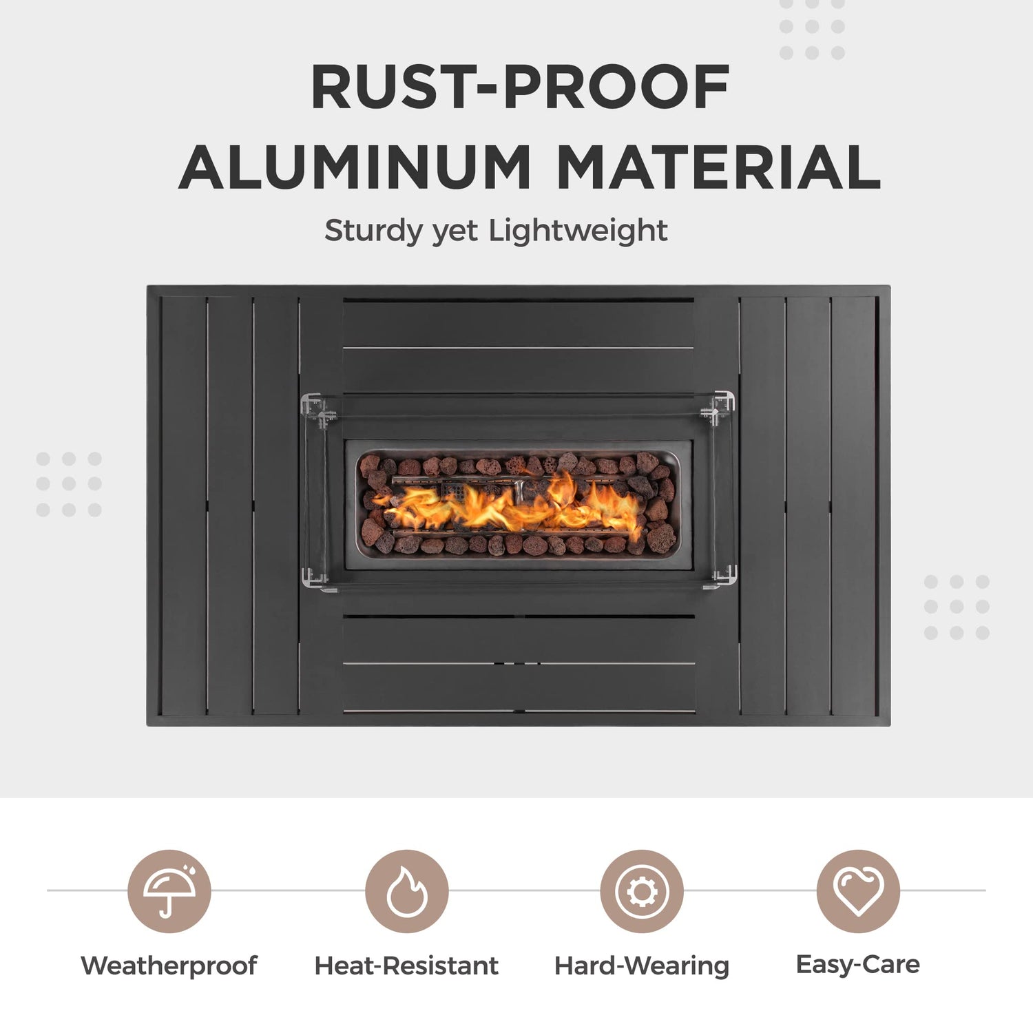 - 【CSA-CERTIFIED FIRE PIT TABLE】Featuring weatherproof aluminum structure and stainless steel burner, the fire pit table is approved for use by the CSA Group and is durable enough to withstand the influence of temperature, rain, and wind. This striking 50,000 BTU propane gas fire pit serves as a focal point for your fresco evenings. Best of all? It’s easy to operate.
