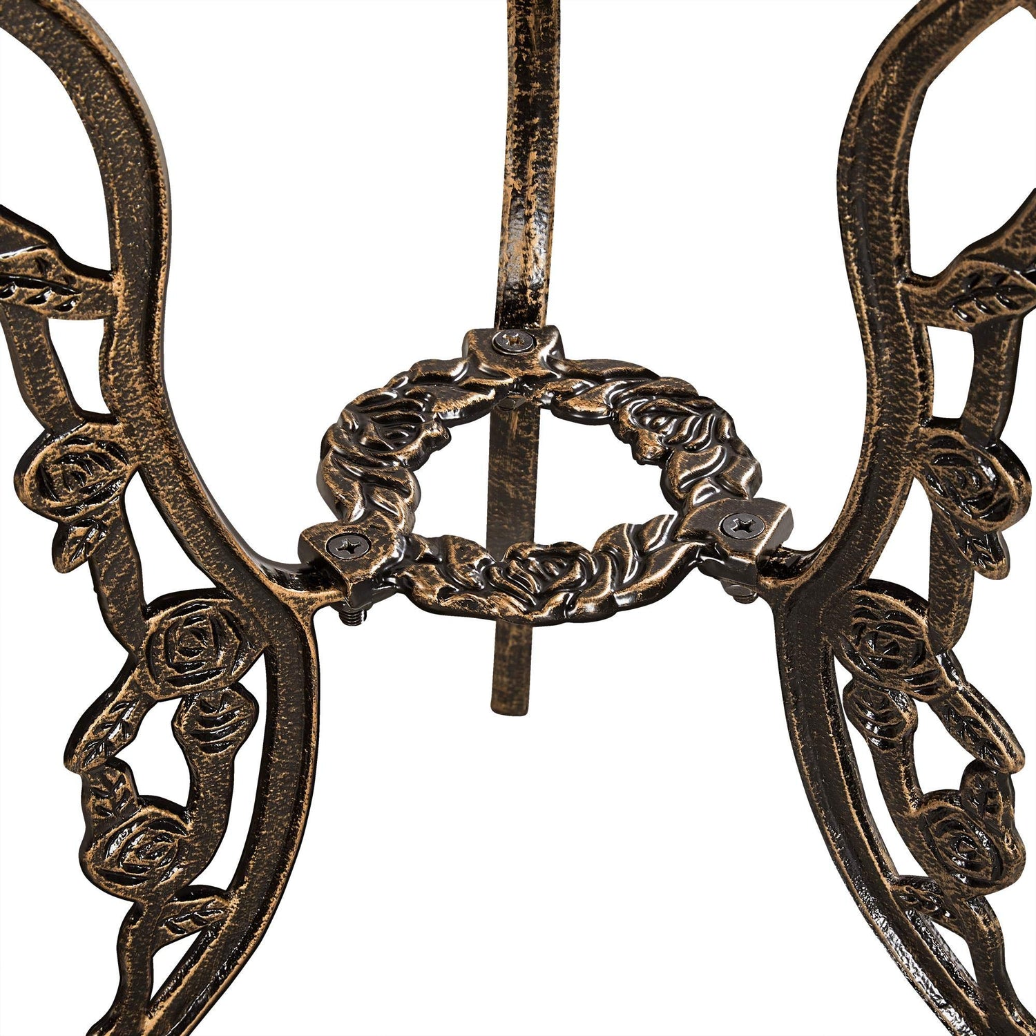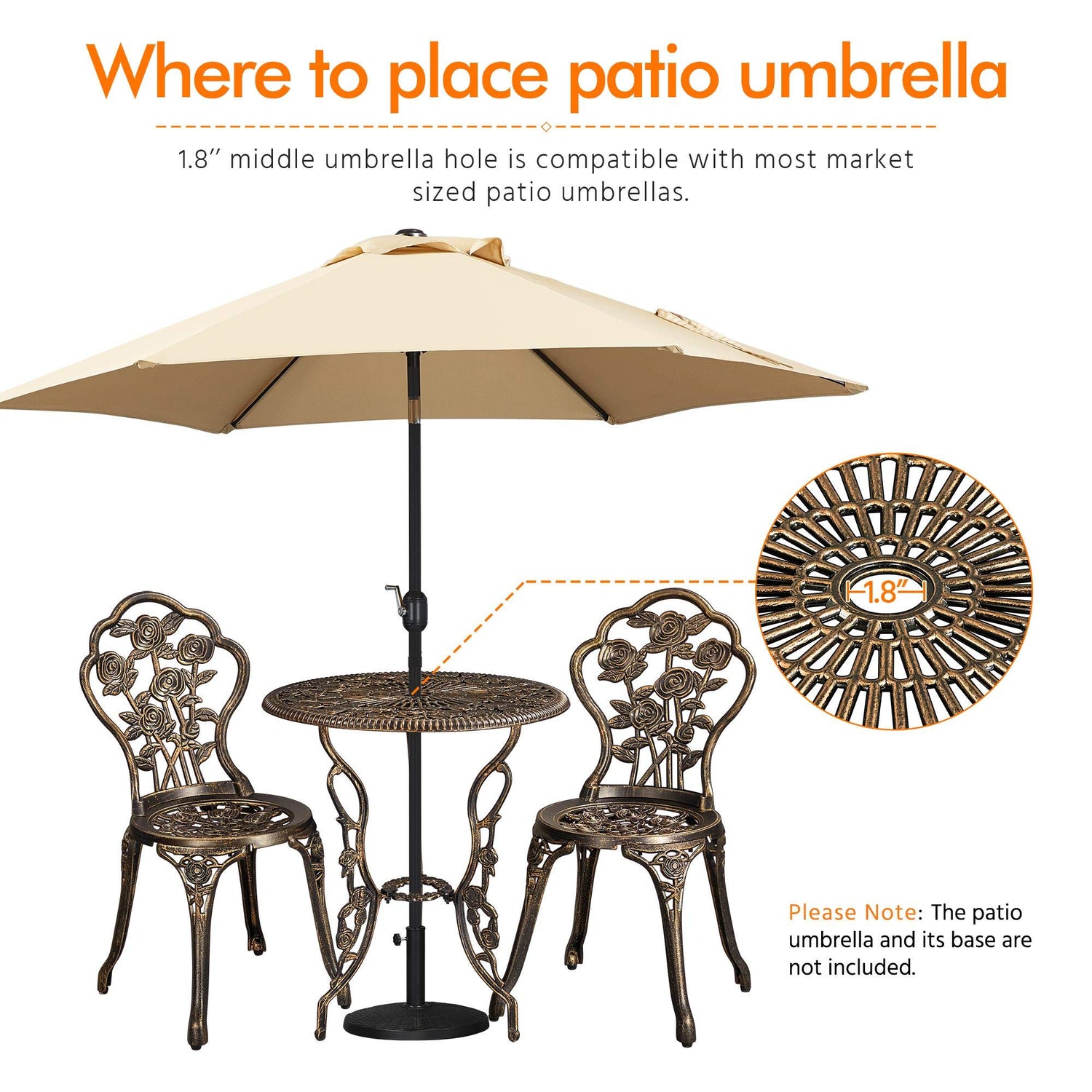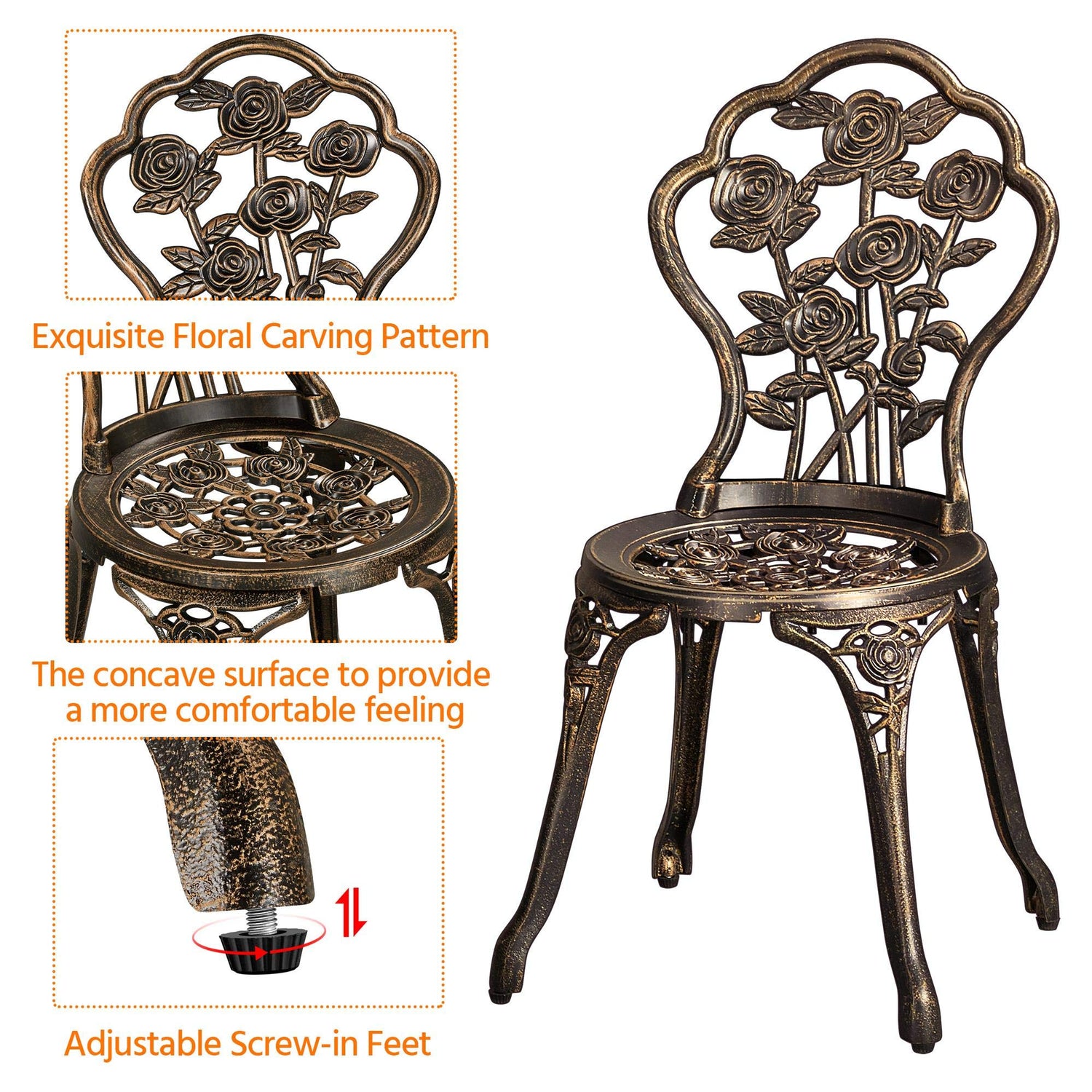 Yaheetech 3-Piece Outdoor Bistro Set w/Rose Design, Rust-Resistant Cast Aluminum Table and Chairs w/Umbrella Hole for Balcony Backyard Garden - Bronze