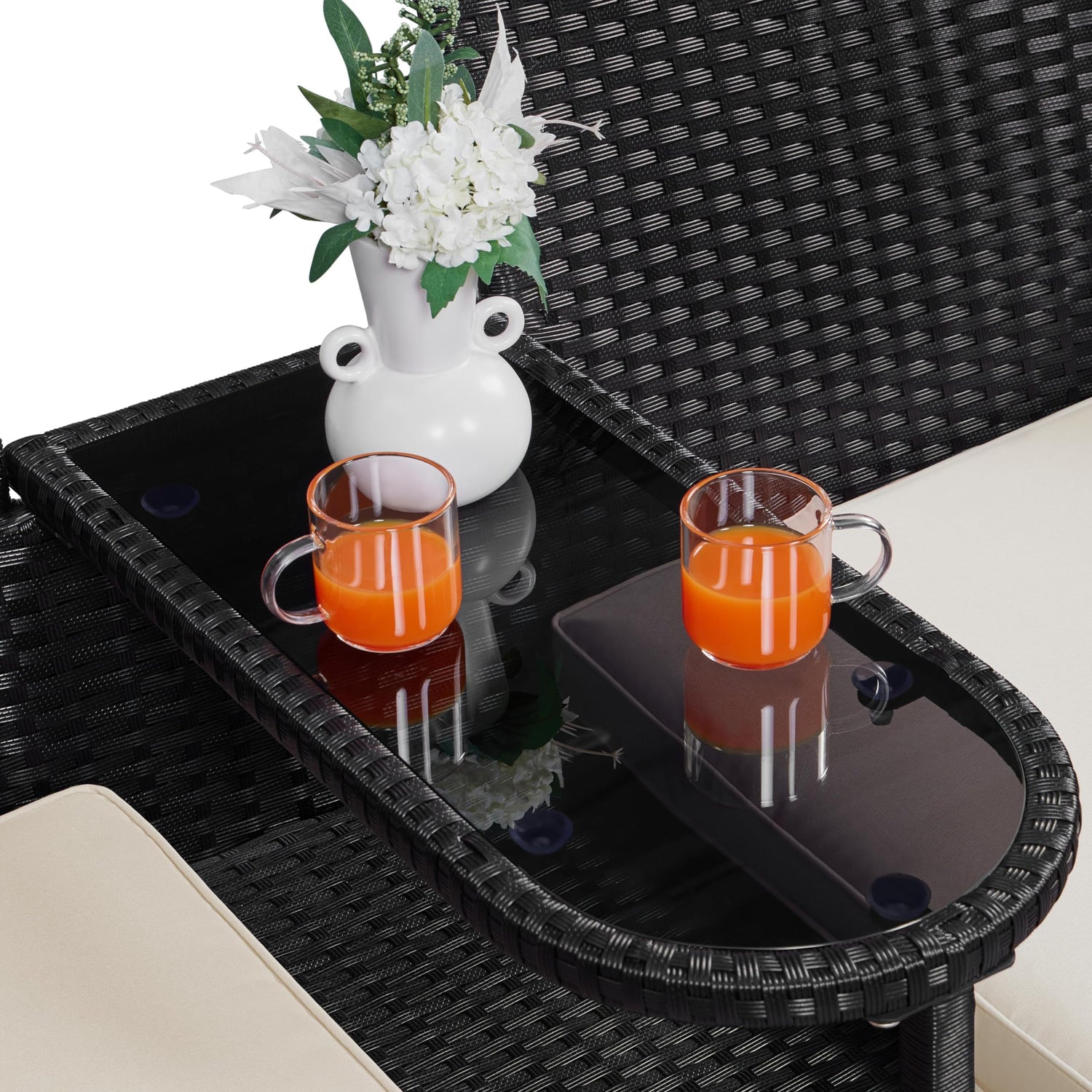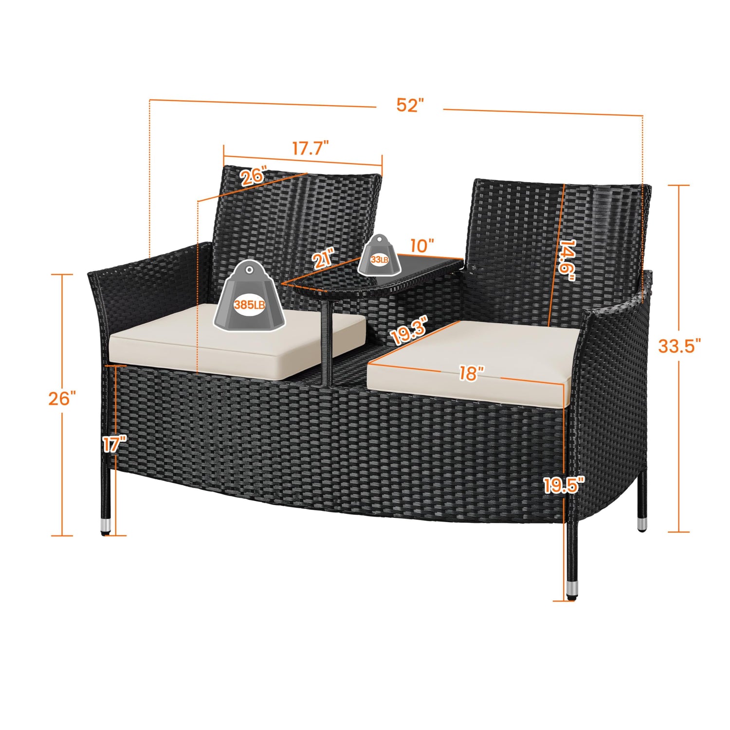 Yaheetech Patio Loveseat, Outdoor Wicker Double Chair w/Side Table, PE Rattan Furniture Set for Two People, Love Seat w/2 Removable Cushions & 1 Tempered Glass Side Table, Black/Beige