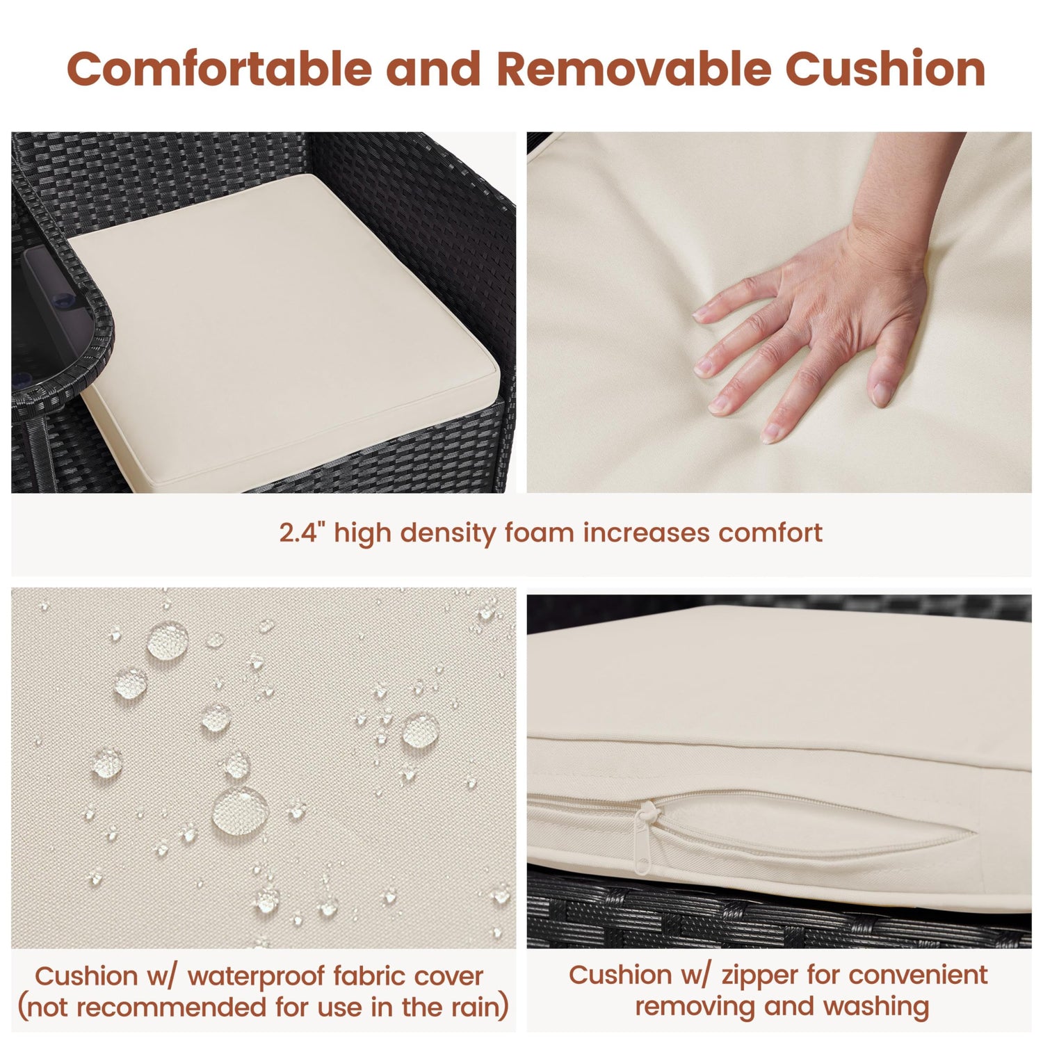 - Low Maintenance: As outdoor use furniture,low maintenance is an essential requirement. This PE rattan chair is such apiece. Between seasons, if you want to refresh and store it for next year's use, just remove the cushion andwash the rest of the part with clean water. Additionally, the covers of thecushions are machine washable