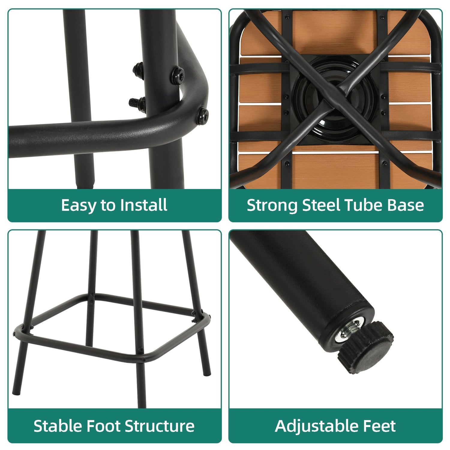 - 【Stable and Durable】Heavy-duty metal construction with looped metal connecting tubes under the plastic wood seat for extra stability and durability.