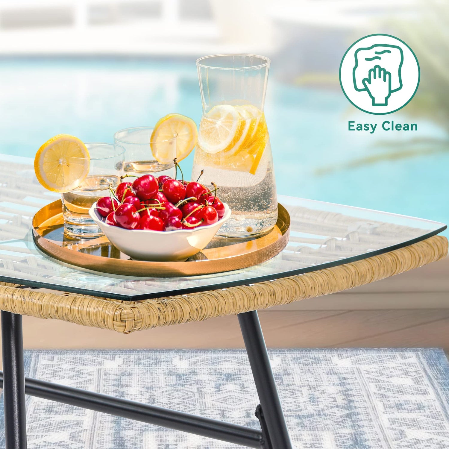 - Elegant Accent Table: Enhance your outdoor space with a stylish side table boasting a sleek black/transparent tempered glass top that exudes sophistication while providing reliable support for up to 75lbs of refreshments or decor