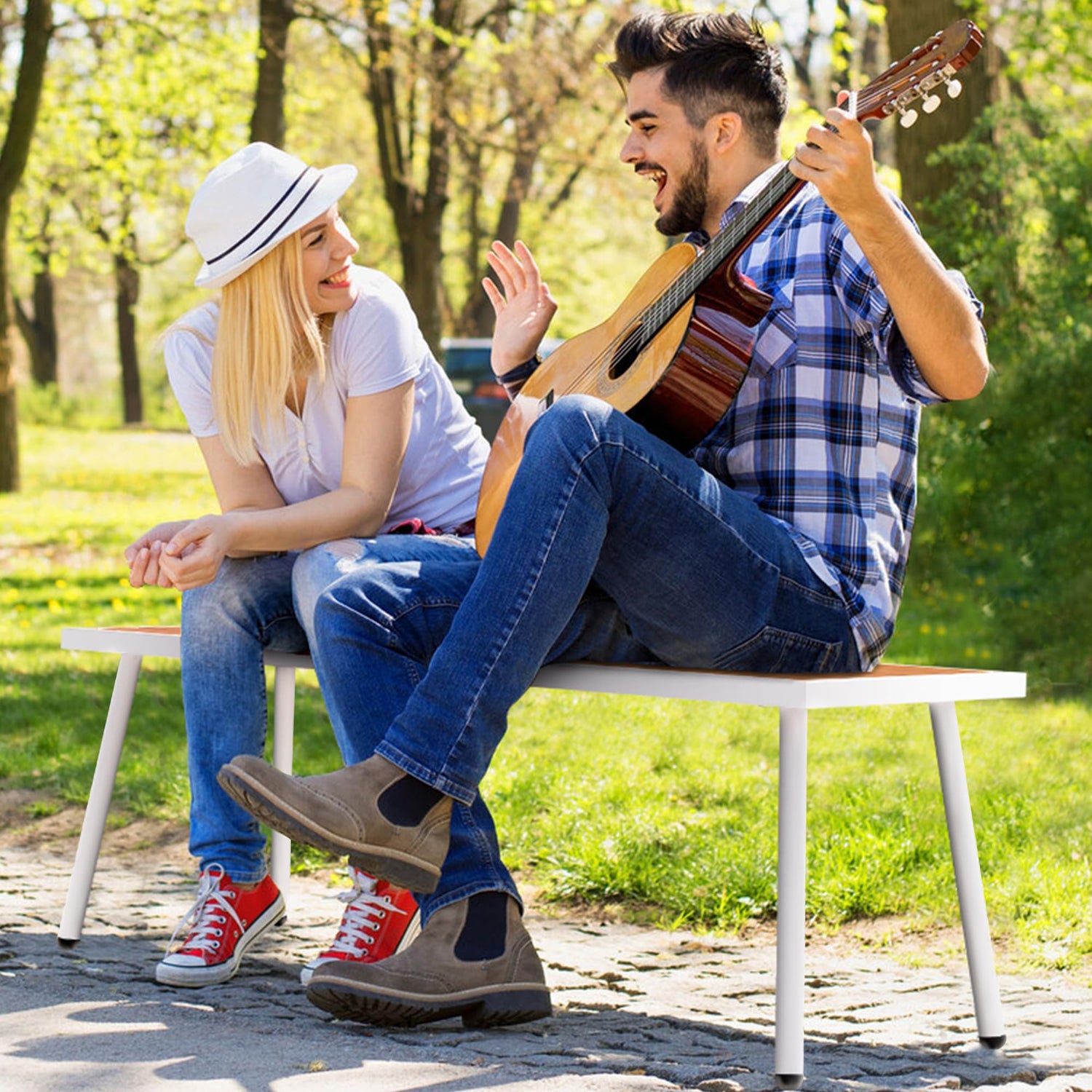 • MODERN RUSTIC STYLE: Our dining bench, featuring a white frame and a wooden-colored seat, showcases a furniture style that seamlessly blends modern and rustic elements. Its versatility makes it suitable for various indoor and outdoor settings, as well as dining table sets.