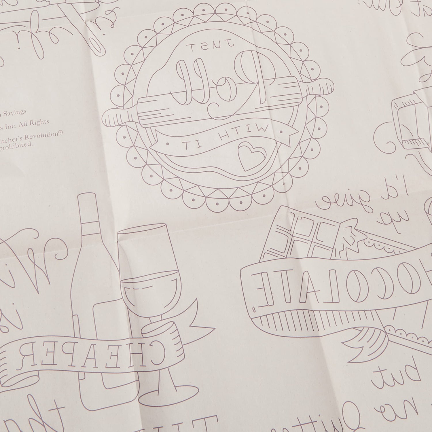 Details: This package contains 9 different iron-on transfer patterns of kitchen related sayings and designs for embroidery. Pattern comes with a brief stitch guide as well as a color guide to get you started.
