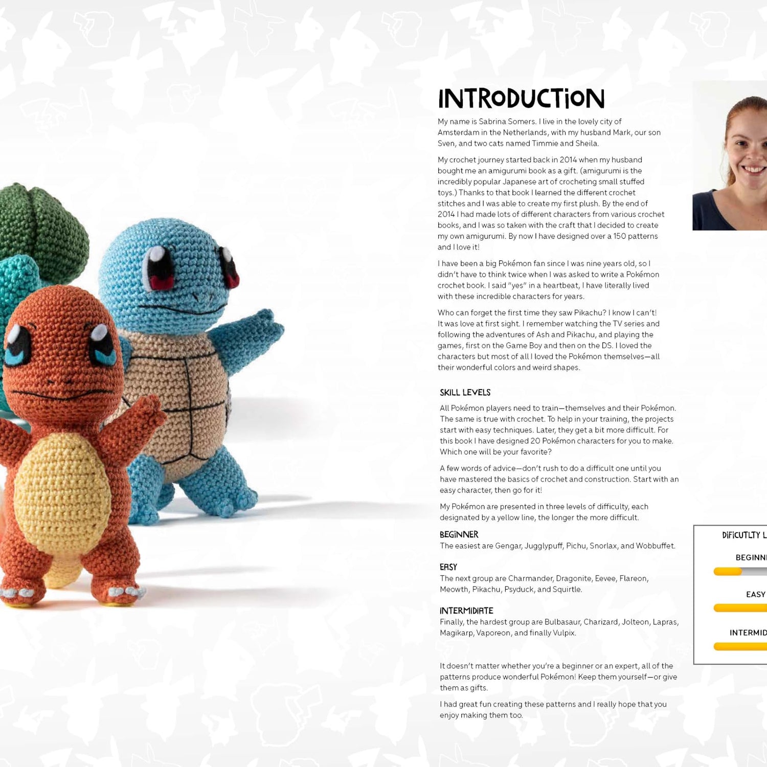 The projects are split into three skill levels: Beginners, then Easy, and finally Intermediate patterns that are a little trickier. But whichever level you work on, the results are stunning. The beginner projects start with Gengar, then Jigglypuff, Pichu, Snorlax, and Wobbuffet.; Easy projects start with Charmander, then Dragonite, Eevee, Flareon, Meowth, Pikachu, Psyduck, and Squirtle. Intermediate projects start with Bulbasaur, then Charizard, Jolteon, Lapras, Magikarp, Vaporeon, and finally Vulpix. Author Sabrina Somers has been a Pokémon fan since she was nine, and an amigurumi aficionado since 2014 when she first picked up the crochet hooks. She combines both passions to perfection in this book that combines instruction with invention.