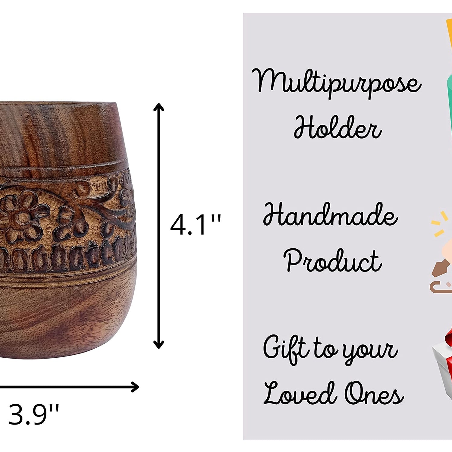 - Aesthetic School Accessories: This Geeky Pen Holder is Solid and Durable as it is Handmade from 100% Eco-friendly Mango Wood. Additionally, Floral Handcarving on the outer circumference and natural wood finish, adds a antique touch to it, making it elegant and decorative.