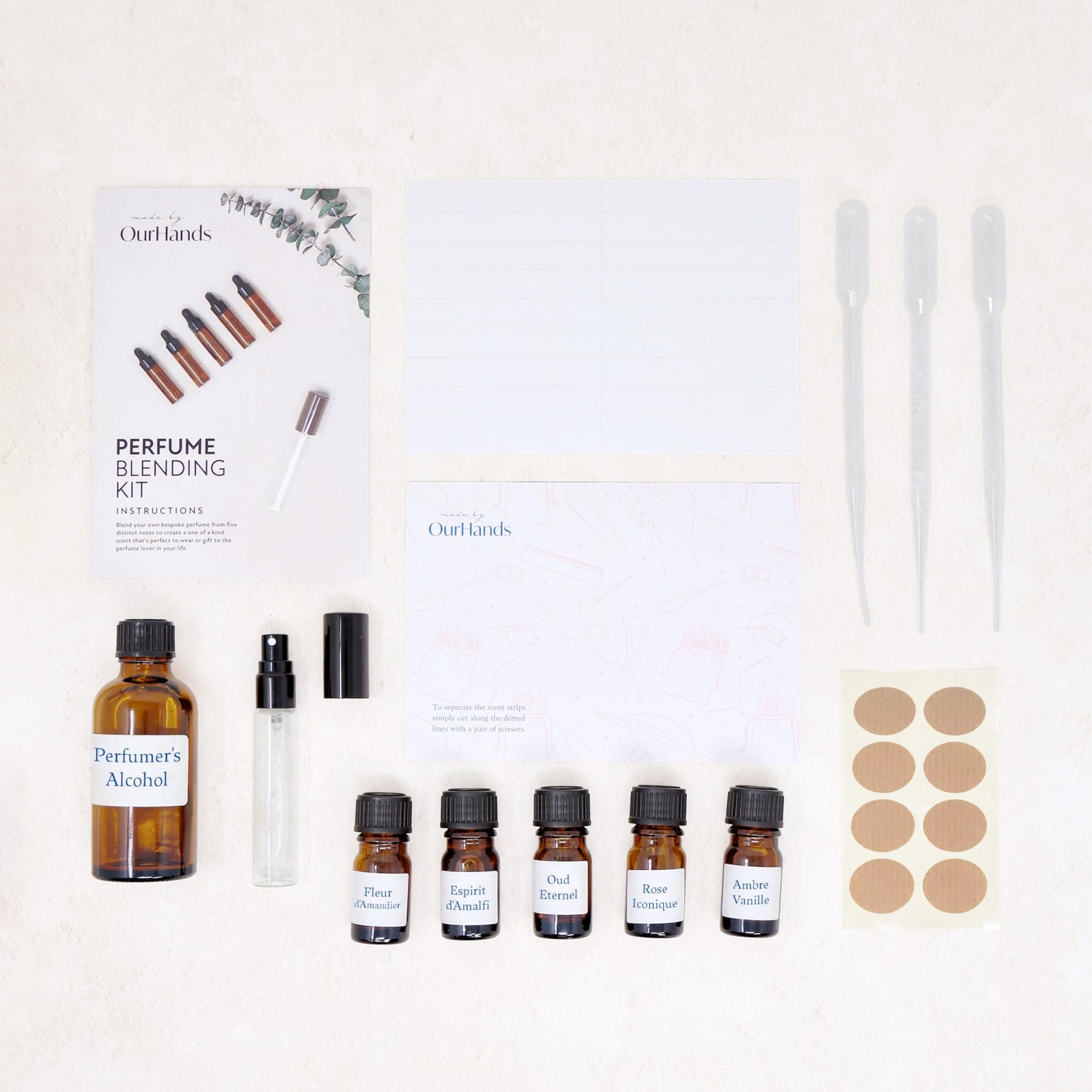 - COMPLETE KIT: Discover endless possibilities with five blendable fragrance oils and premium Perfumer’s Alcohol, allowing you to experiment and perfect your personal scent. The reusable glass atomiser is ideal for both daily wear and travel, while customisable naming stickers let you personalise your creations.