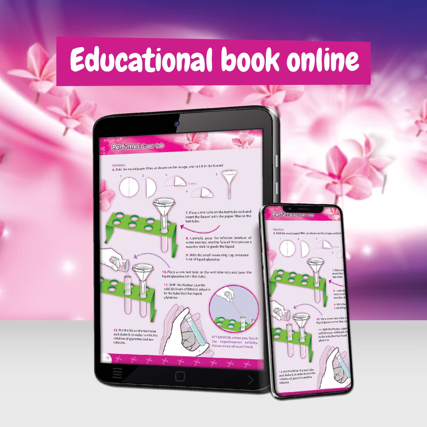 - 【Where to find the instructions with the experiments?】-- The perfume making kit for girls and boys includes an educational book with experiments, available online via the QR code or the website indicated on the toy box and on the leaflet.
