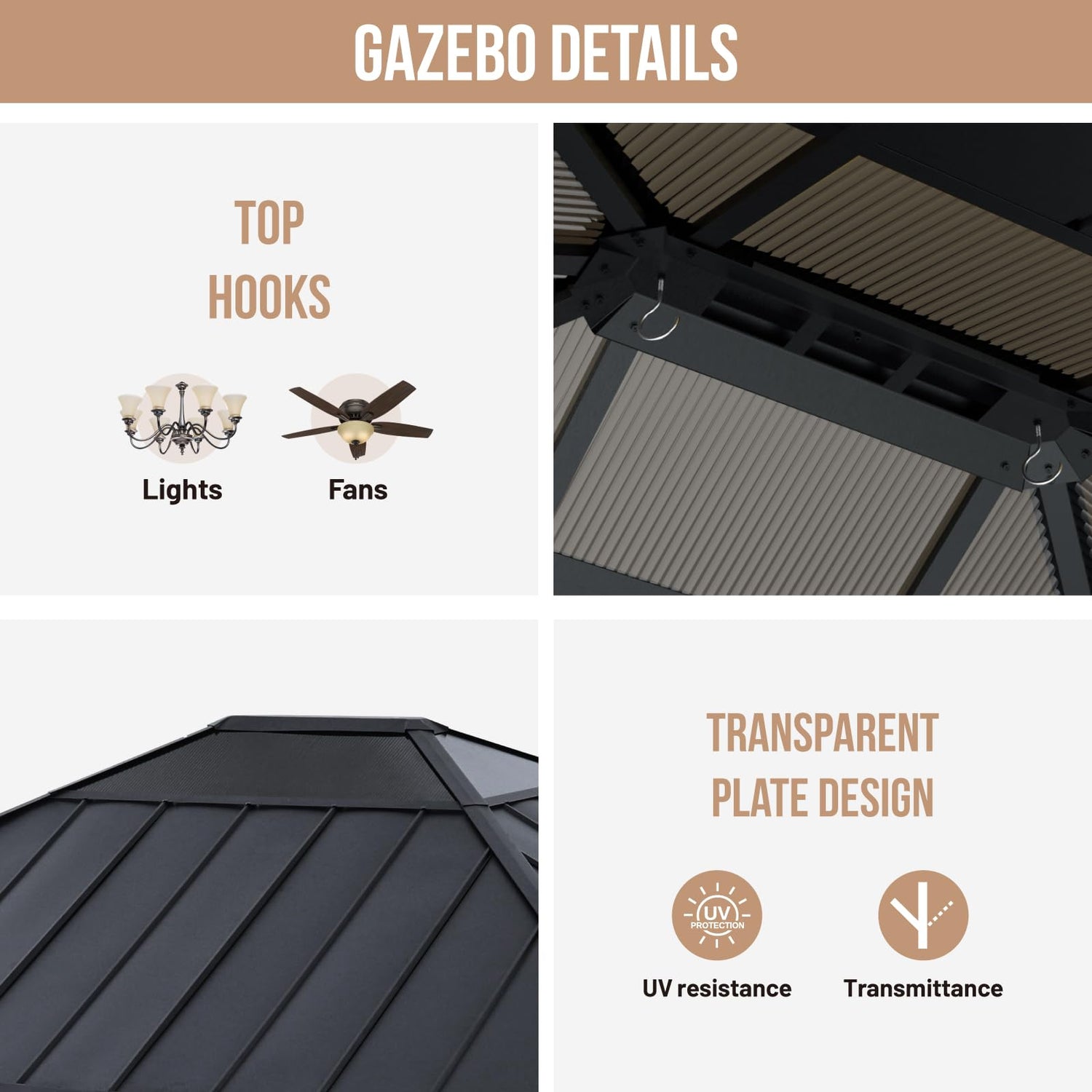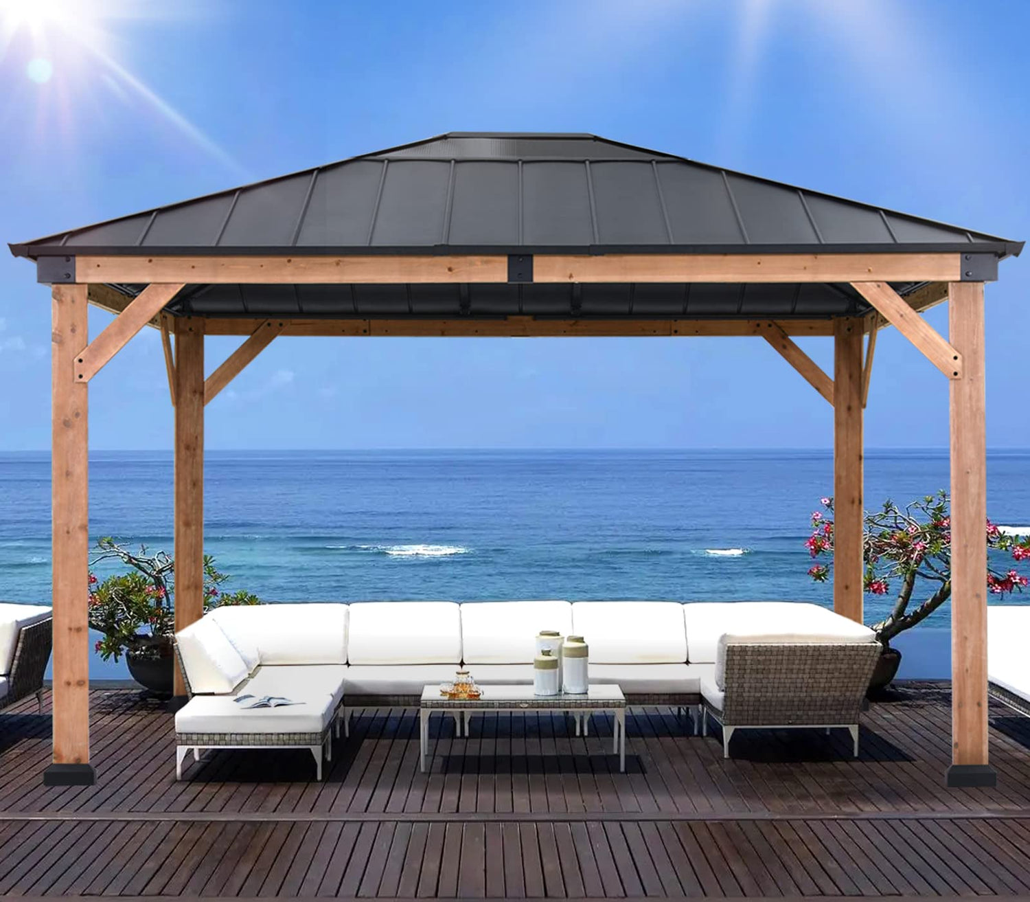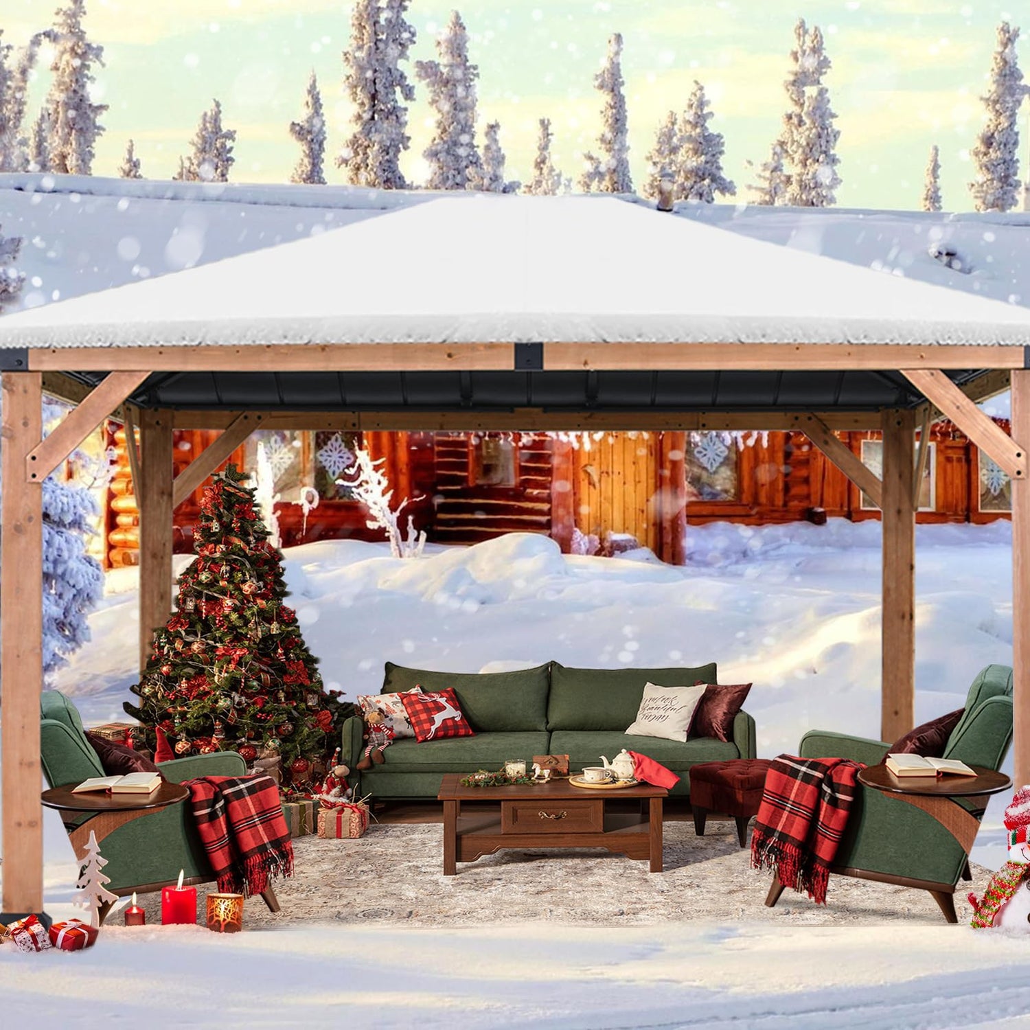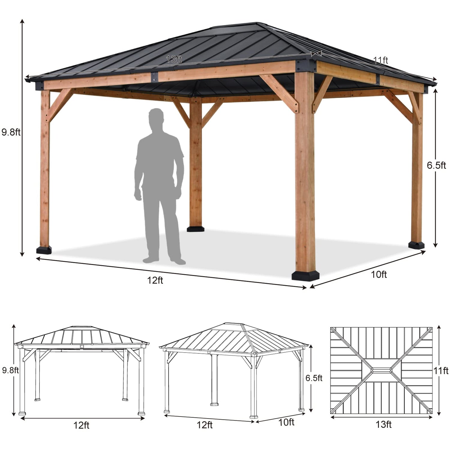 ABCCANOPY Wood Gazebo 11x13 - Outdoor Patio Wooden Gazebo with Hardtop Metal Roof for Garden, Backyard and Deck (Single Roof)