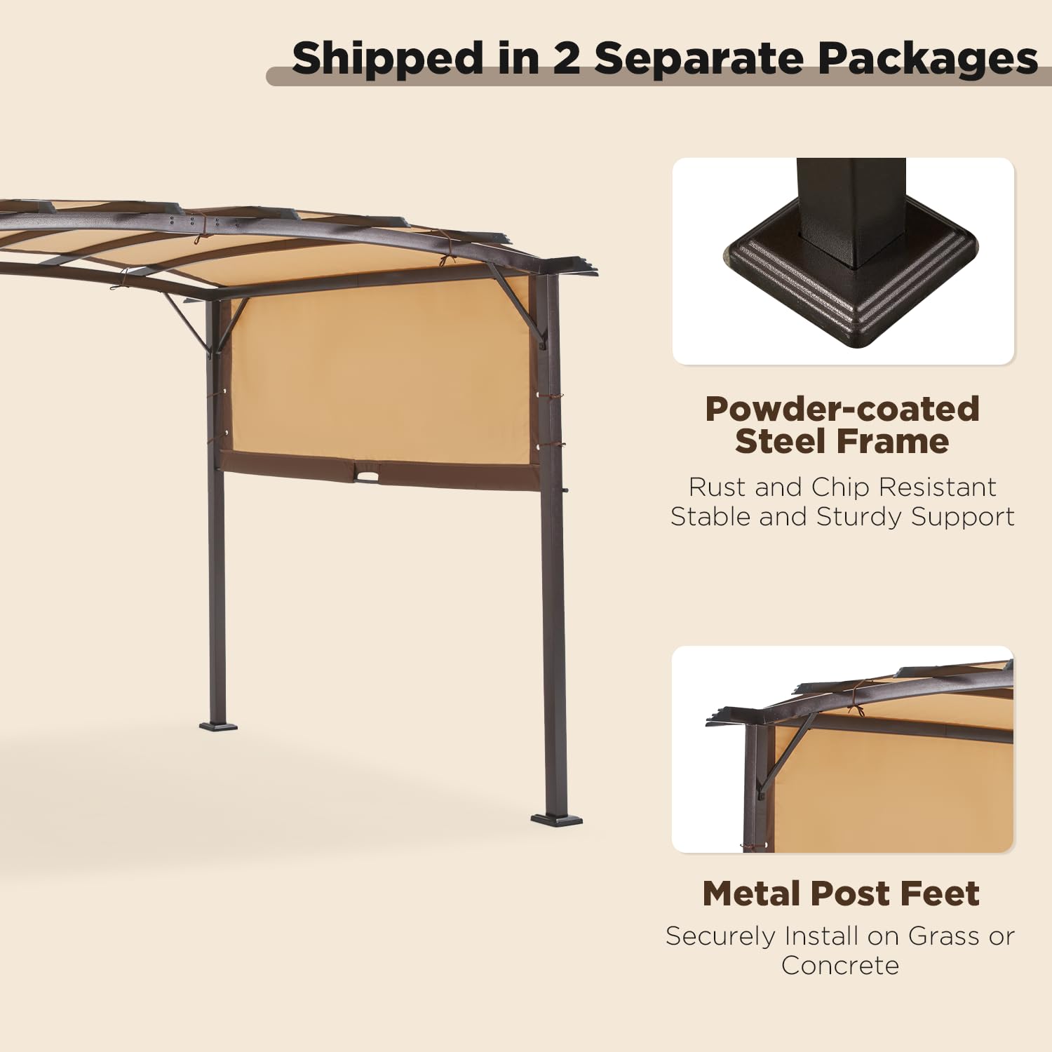 - Superior Build: Crafted with a powder-coated steel frame and robust support beams, this pergola kit boasts exceptional durability. Additional straps enhance wind resistance and enable you to fold the shade canopy for more sun exposure. The premium fabric protects against sun and rain, making it perfect for outdoor activities like camping or relaxing under a canopy tent.