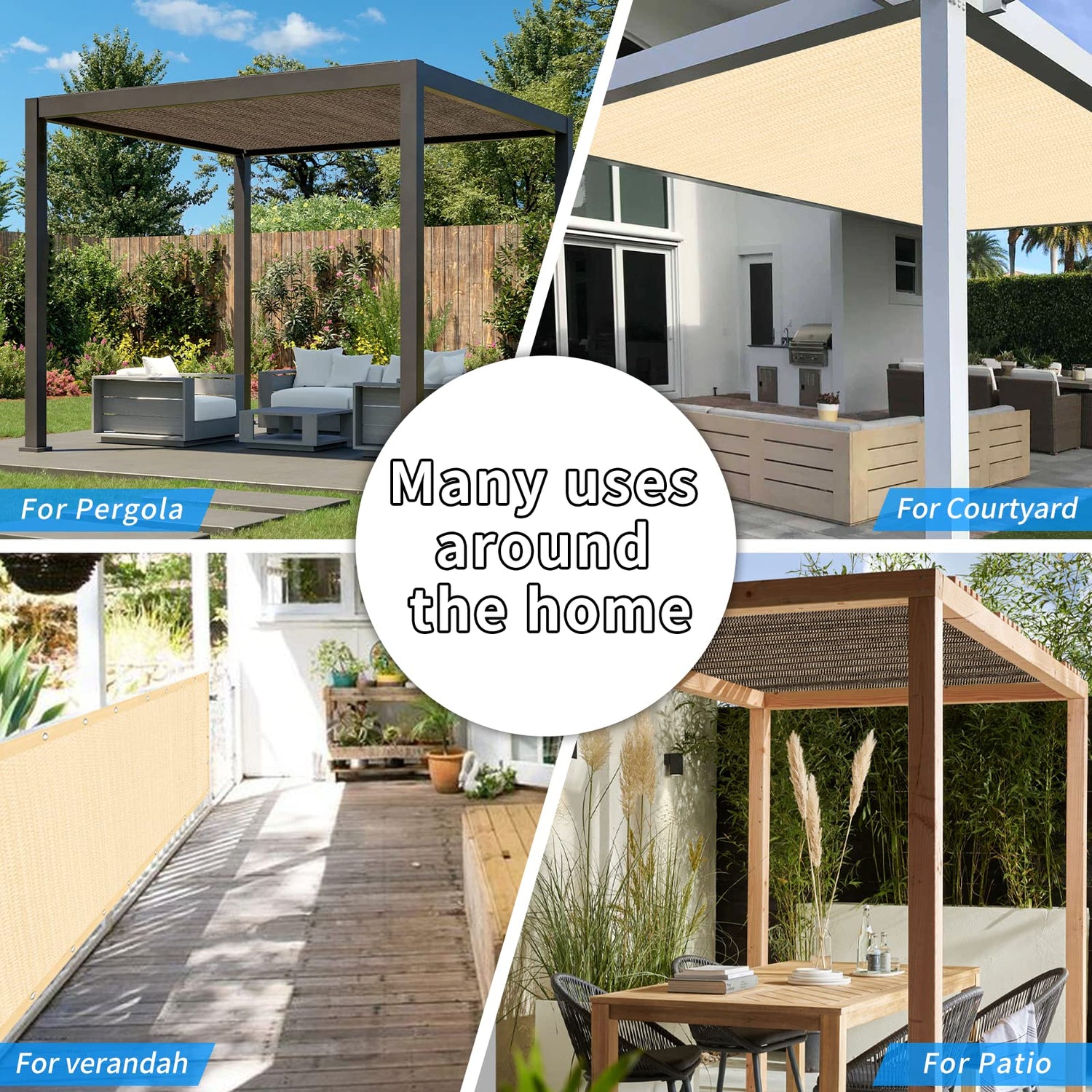 - 【Easy to Install】: Attach to the fit size structure with zip ties or bungee balls (this shade cloth comes with 30 zip ties,12 bungee balls,and 6 nylon rope as a bonus). Strapped it down on the pergola or patio with screws for more stable.