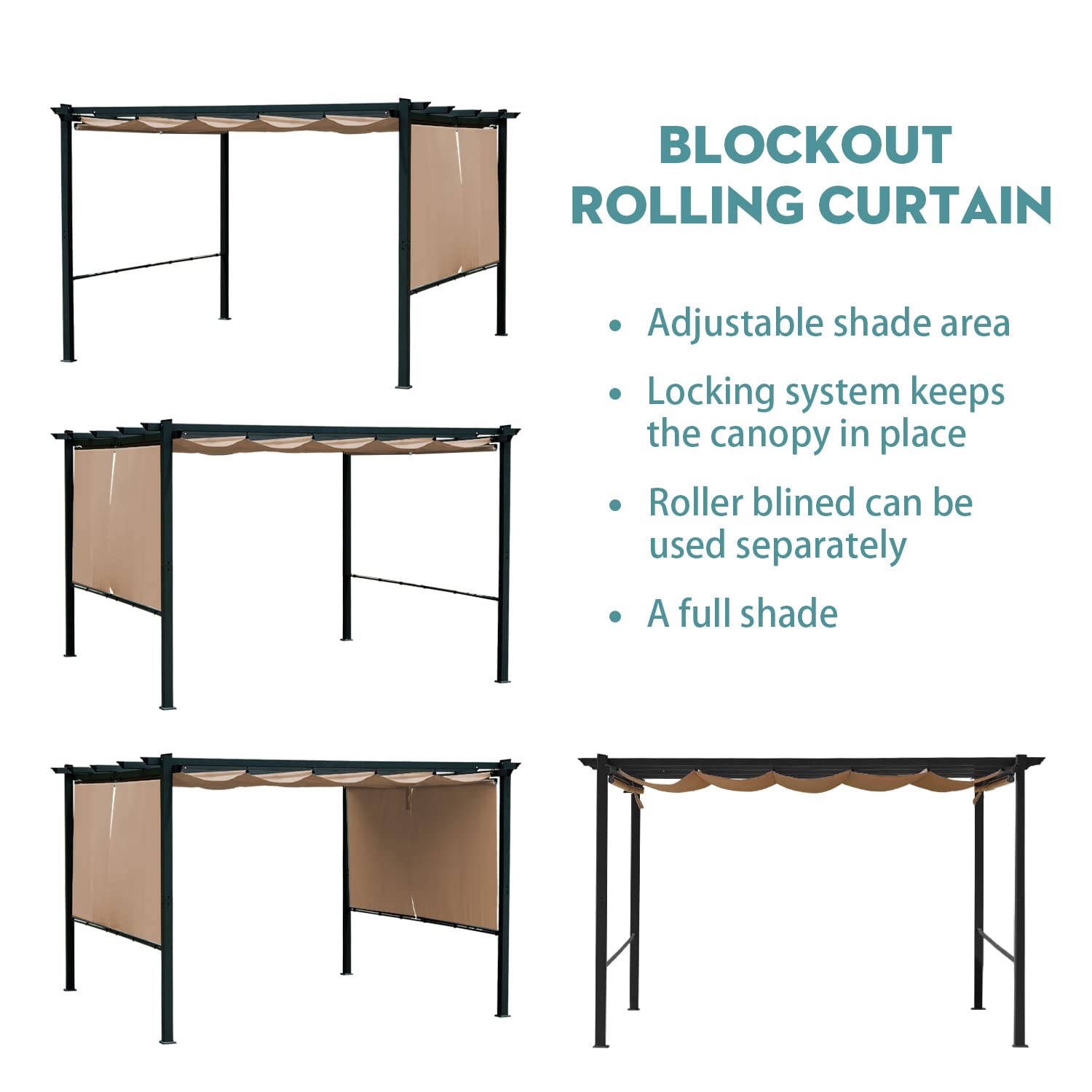 - Practical design - Equipped with 4 pieces of blockout rolling curtains, which can be used at one side or both sides to screen out the extra sunlight. Suitable for decks, backyard, garden, patios.