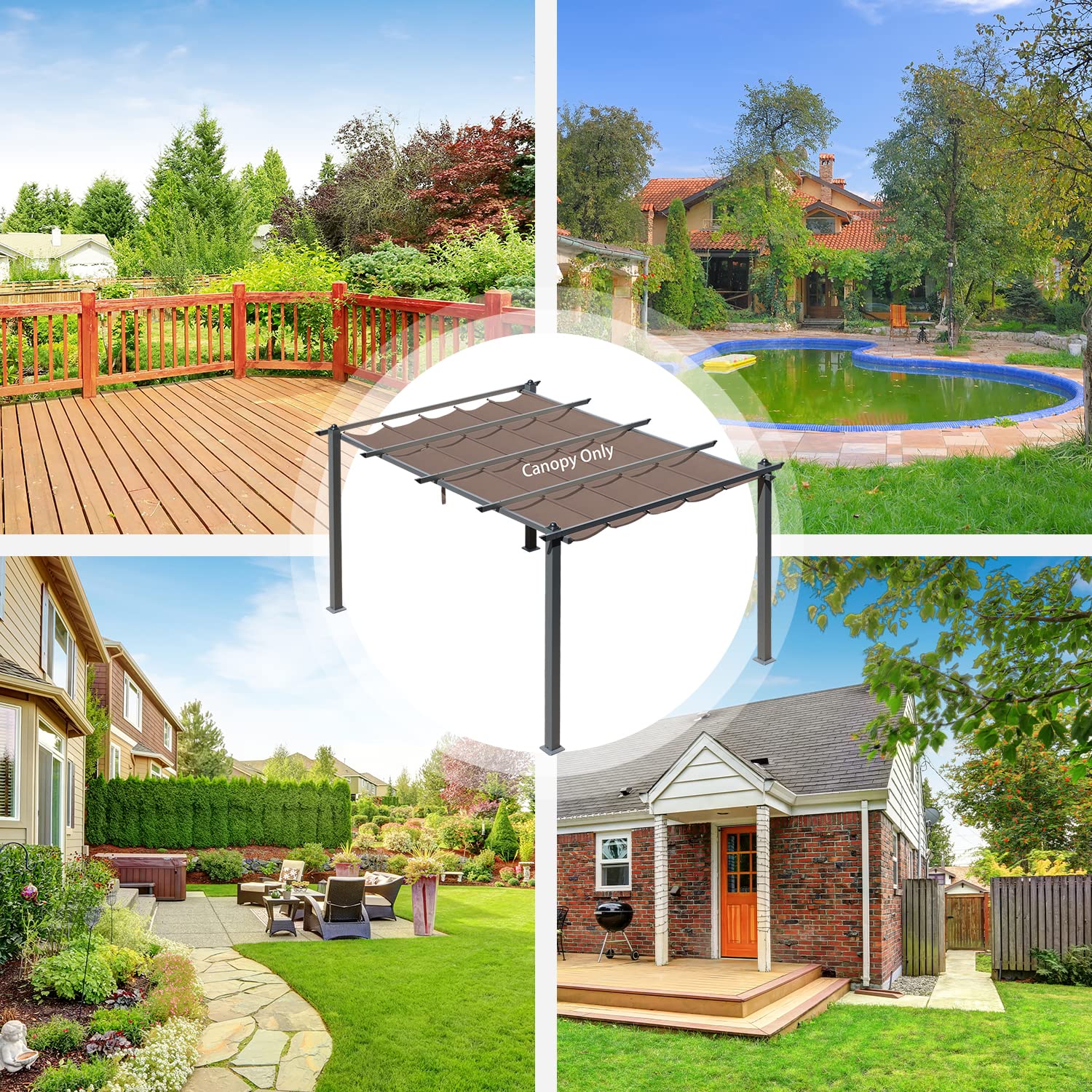 Aoodor Replacement Pergola Canopy - Retractable Shade in Dark Brown Fabric for 10 x 13 ft Pergola, UV Resistant, Fade-Resistant, Water-Repellent, Adjustable and Durable Fabric