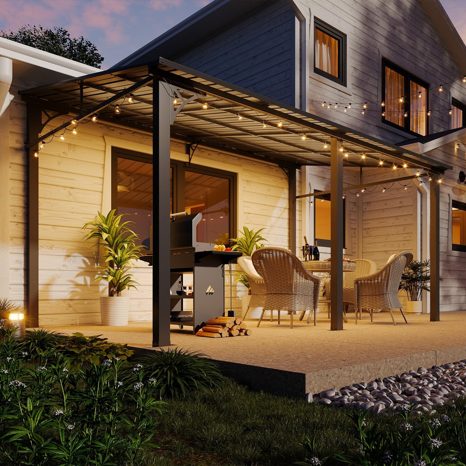 - 【Stable Wall-Mounted Design】Engineered with sturdy steel pillars, beams, and triangular reinforcements, this lean to gazebo ensures rock-solid stability. Secure it to walls and ground using included ANCHORs, allowing the outdoor pergola to withstand 31-38 mph winds without shifting.