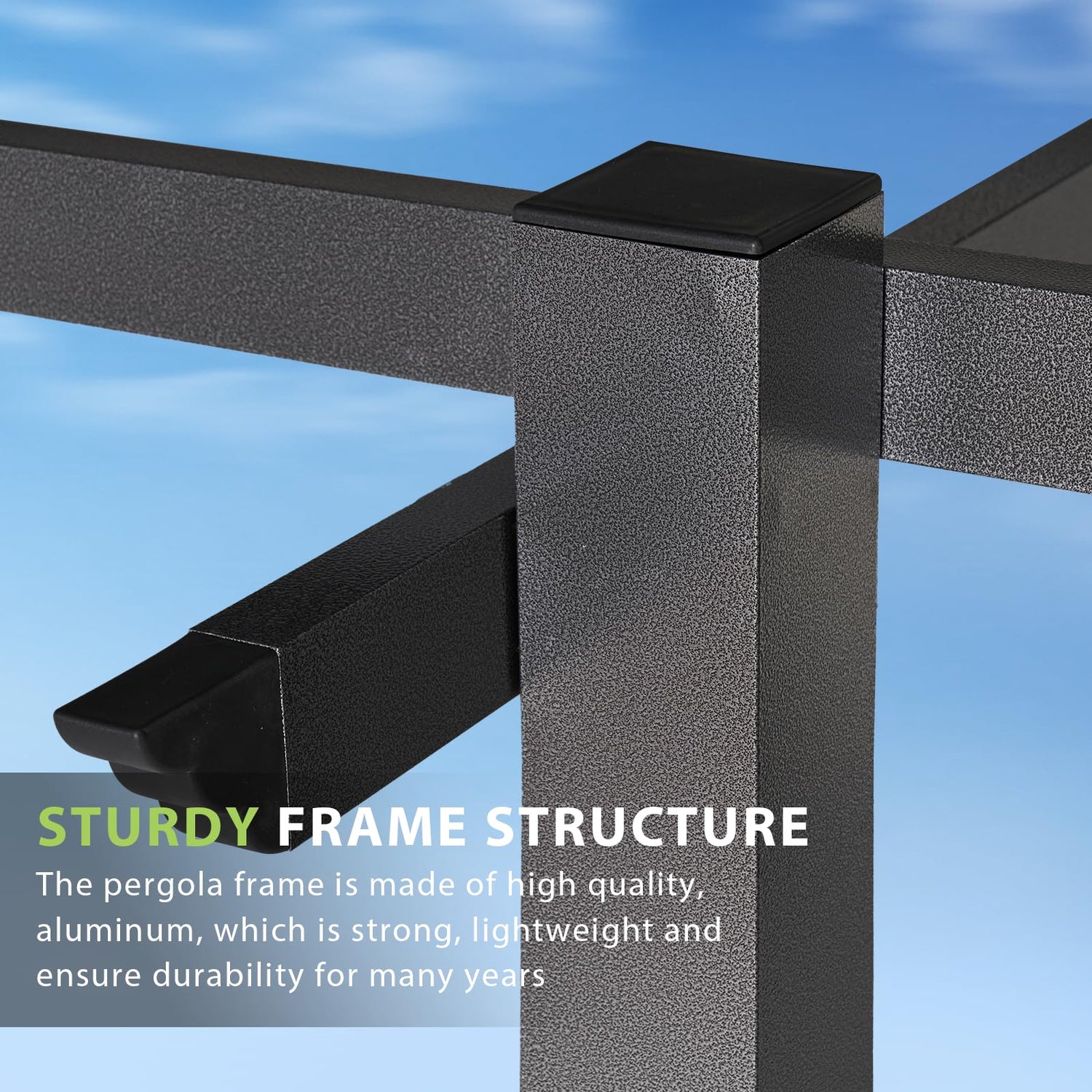 - Durable Frame: The pergola features sturdy aluminum alloy frames with premium powder coat that are not easy to peel, rust or corrode. Maximum wind resistance 31-38 mph. Maximum snow loading depth 1 inch