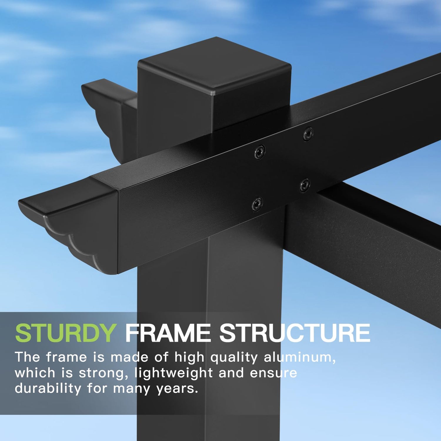 - High-Quality Materials: Our pergola comes with high-quality aluminum alloy frames with powder coating finish, has excellent resistance to weather, rust, corrosion. Durable and suitable for outdoor use, with long-lasting performance and enjoyment