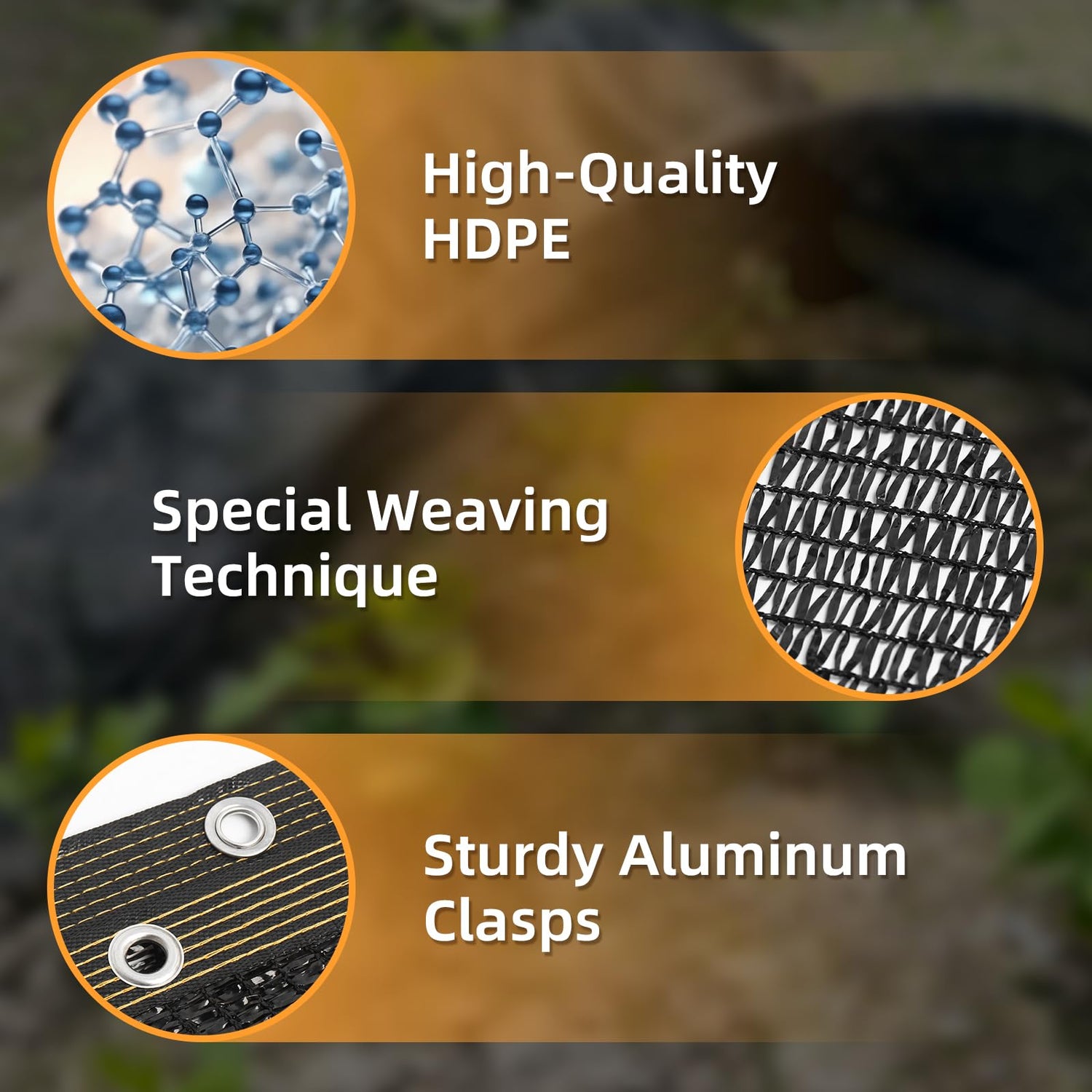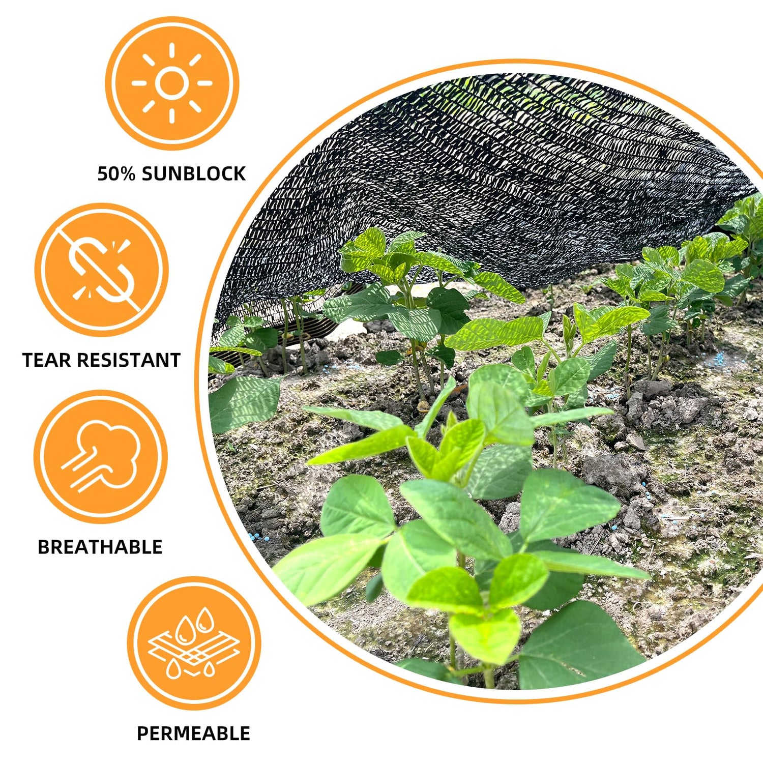 - 【Quality Material】50% shade rate, it effectively blocks most of the sunlight and heat. Made of high-quality polyethylene(HDPE) material, lightweight and odorless, provides UV protection. High-quality aluminum clasps on the edges for strength and durability.