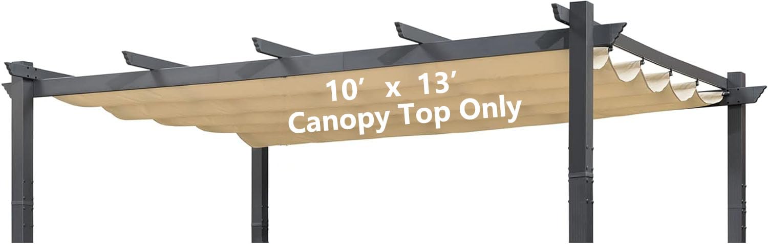 BOJAVOM Pergola Shade Cover, Retractable Pergola Canopy for 10' X 13' Outdoor Pergola, Fade Resistant Durable Yarn-Dyed Fabric Pergola Replacement Canopy w/Drawstring - Beige