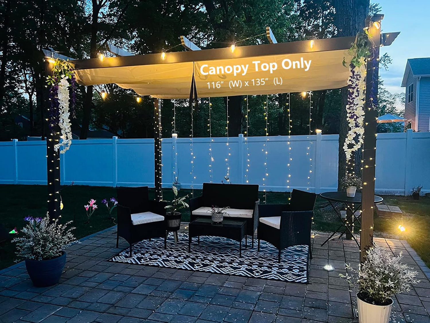 • Ideal for Most 10' X 13' Pergolas: The canopy size is 116"(W) x 135"(L) for replacing most pergola canopies, please check your pergola size before purchasing