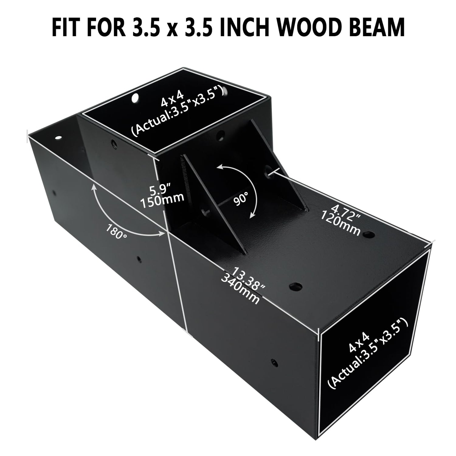 - Fit for 3.5" wood beam----The gazebo bracket takes a column-shaped design,each angle of corner connector is 180 degrees,Its inner size is 3.6 x 3.6"/9.15 x 9.15cm, which is perfect for 3.5"x3.5" wood beam,Before purchasing the product, please make sure the diameter of the wooden post is 3.5"
