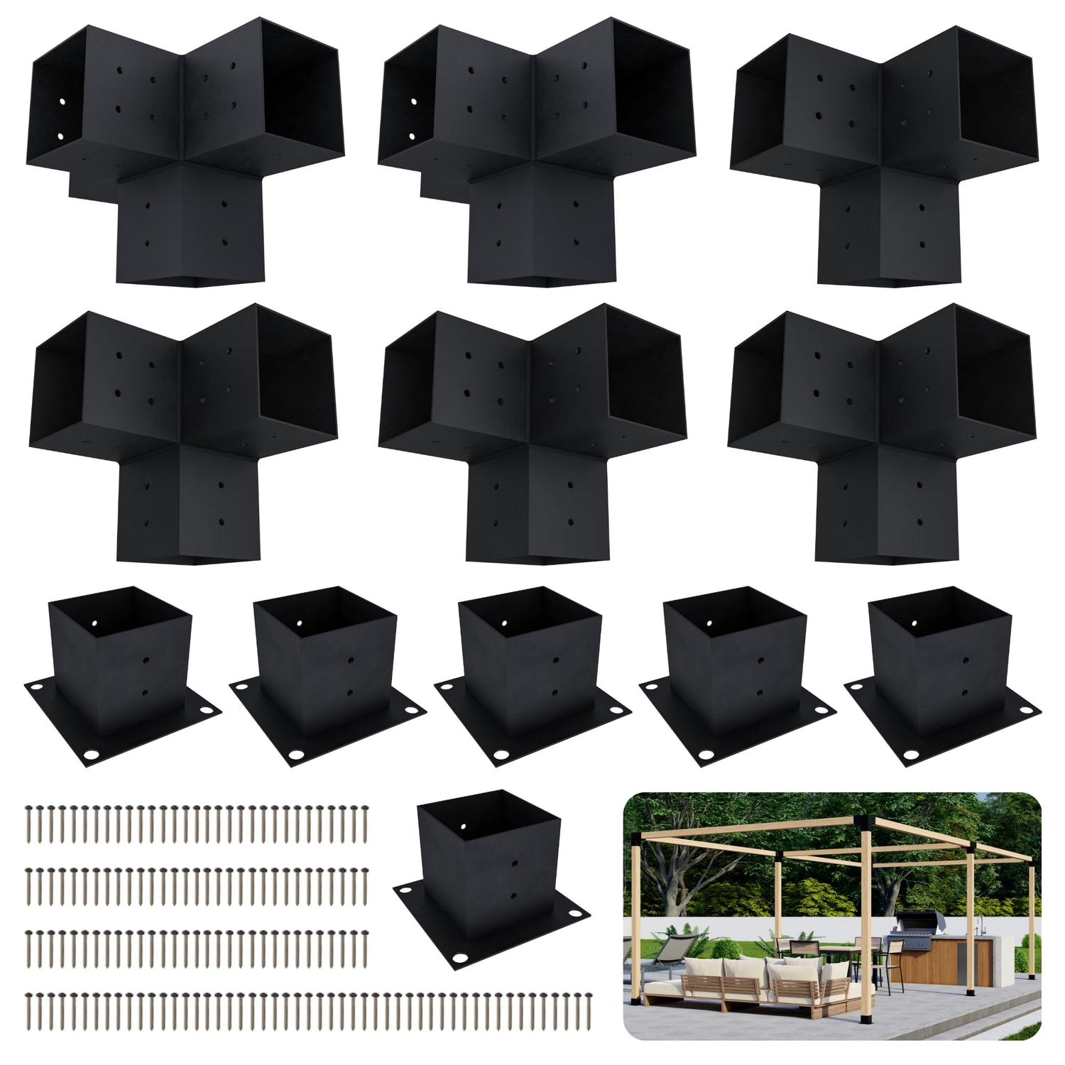 - DIY freestanding 20x12 pergola kit includes: 6 post base brackets, 4 corner 3-arm brackets and 2 middle 4-arm brackets (all for 4x4 wood posts) + stainless steel screws