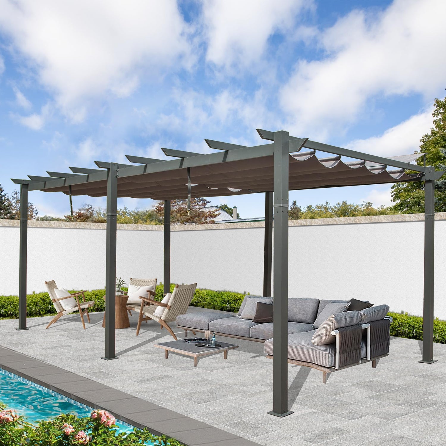 Domi 11'x20' Outdoor Retractable Pergola with Sun Shade Canopy, Aluminum Pergolas and Gazebos Clearance, Patio Outdoor Metal Pergola Canopy for Deck, Garden, Backyard, Dark Grey