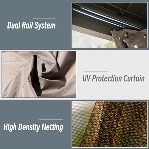 - 🏡❤️Includes Curtains and Netting - Domi aluminum gazebo comes complete with curtains and netting, offering privacy and intimacy in your outdoor space, while the netting keeps insects away, ensuring a safe, serene, and well-ventilated atmosphere.