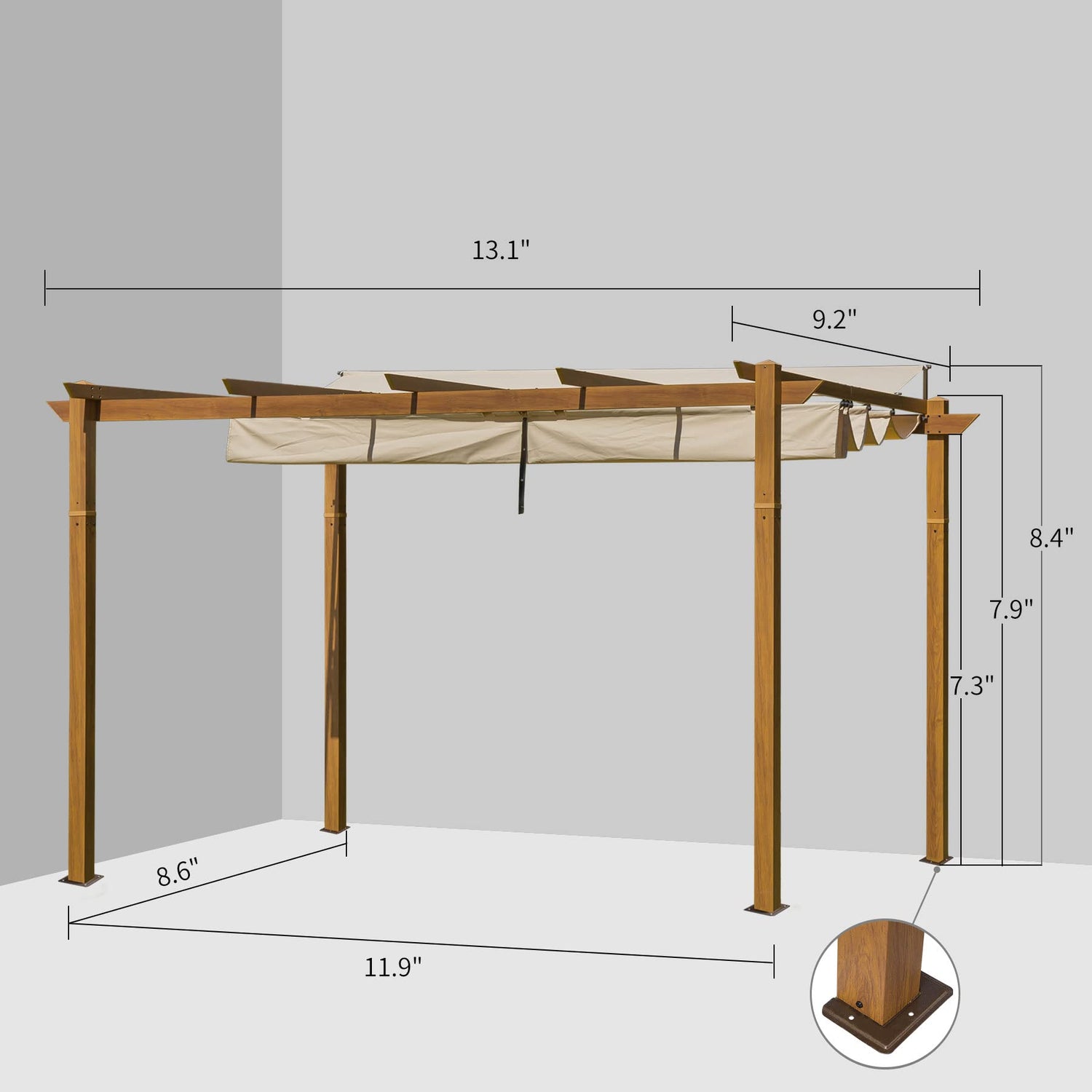 Domi 9’ x 13’ Outdoor Retractable Pergola Against The Wall with Weather-Resistant Canopy Aluminum Garden Pergola Patio Grill Gazebo for Courtyard(Teak Coated)