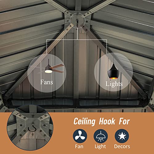 - [Durable Material] The domi hardtop gazebo pavilion, made of strong materials such as aluminum and galvanized steel, can survive in adverse weather conditions such as rain, wind, and snow. It can also withstand fading, rusting, and corrosion, so that it will survive for many years.
