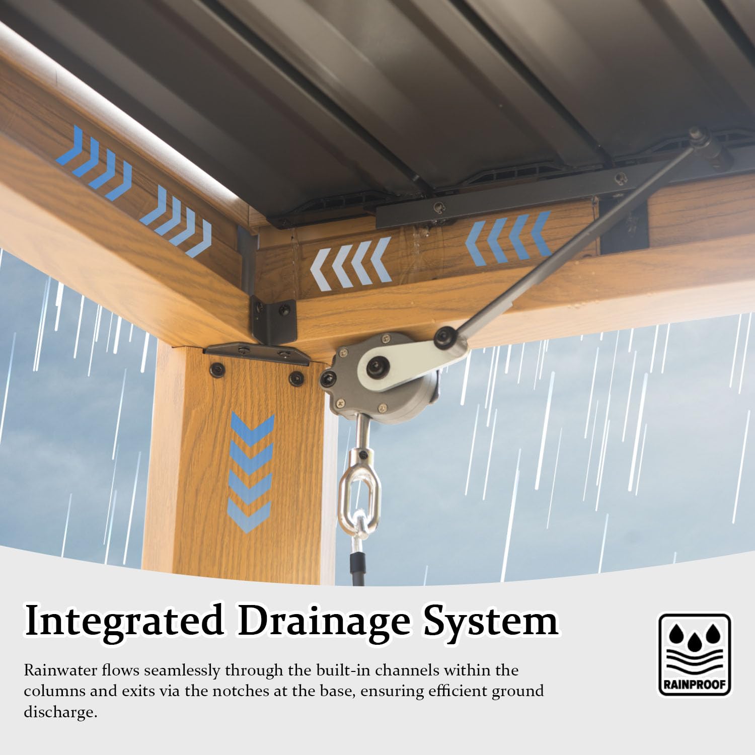 - [Innovative Drainage System] Stay dry and comfortable with Domi’s advanced drainage design. Rainwater is efficiently directed through the louvers into the poles and discharged through base notches, preventing water accumulation. This thoughtful engineering ensures your Domi 10x16FT pergola gazebo remains usable year-round.