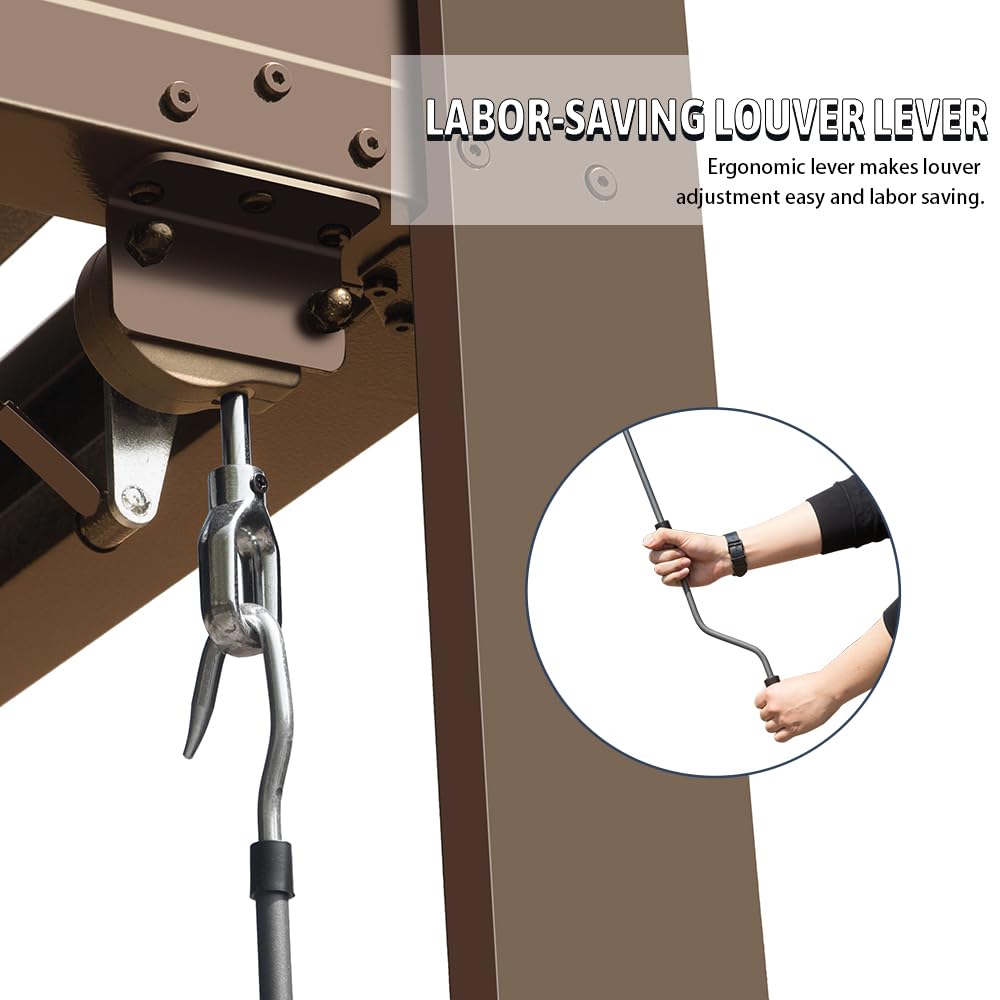 - 🩷🌿Adjustable Shade and Ventilation- Experience customizable comfort with Domi 10x10FT pergolas. Easily control sunlight and shade with our convenient louvers, simply twist the lever to your desired setting. Whether you crave a cool, shaded retreat or yearn to bask in the sun's warmth, our pergola effortlessly caters to your preferences.