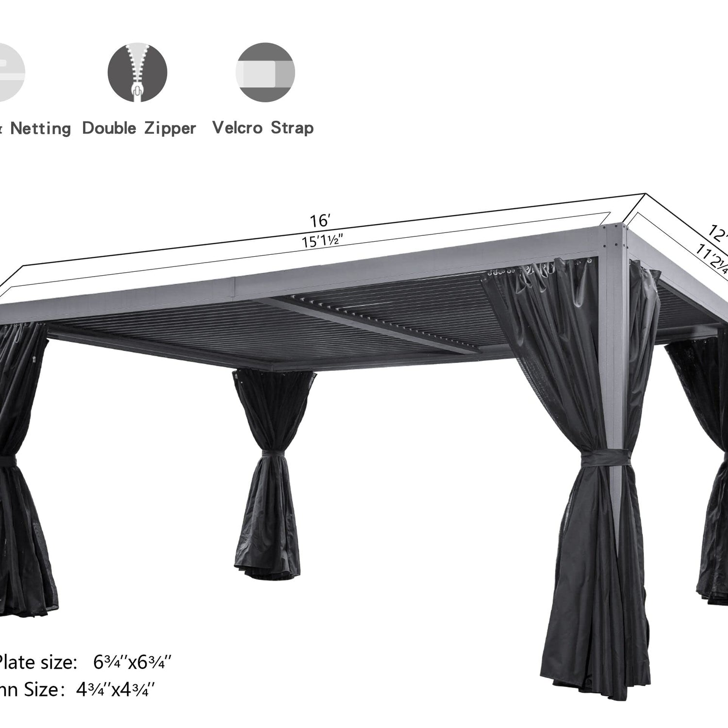 Domi Outdoor Louvered Pergola 12'x16' with Adjustable Aluminum Roof,Grill Gazebo for Patios,Aluminum Frame with Curtains and Mesh for Garden,Patio,Backyard