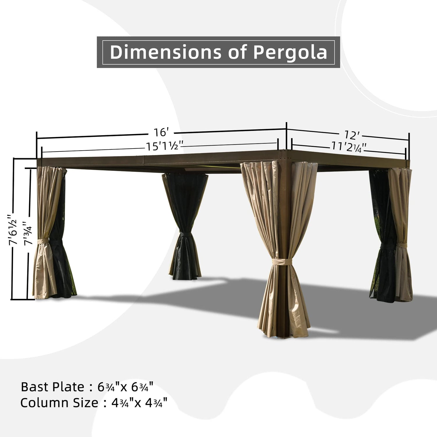 - 🌞Oversize Sunshade - This Domi outdoor pergola measures 16' L X 12' W x 7.6' H and it provide 192 square feet shade.This permanent aluminum pergola become a perfect choice for outdoor barbecue,party or daily relaxation with your family and friends.What’s more,you can use it as an outdoor parlor or even a parking shed for your car.