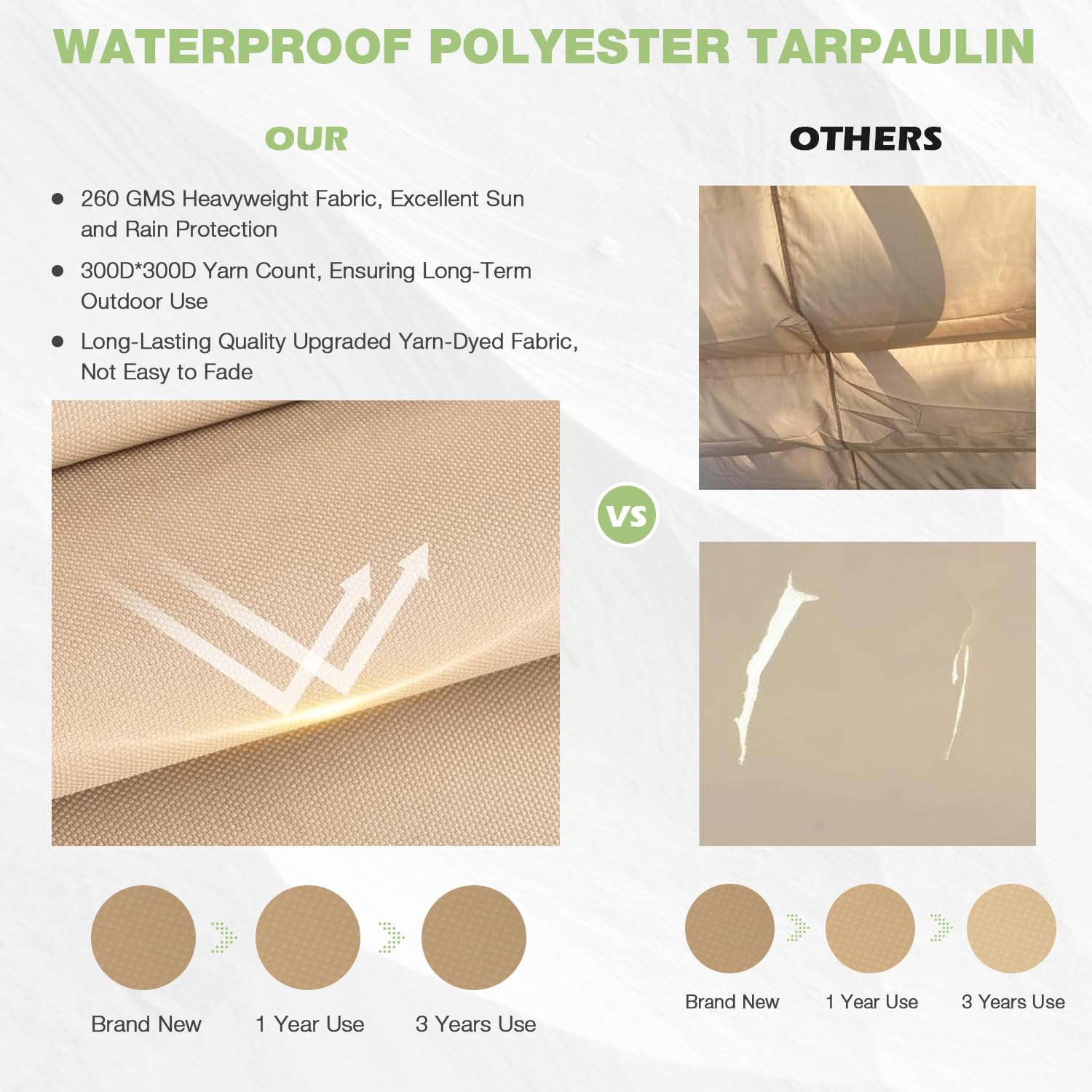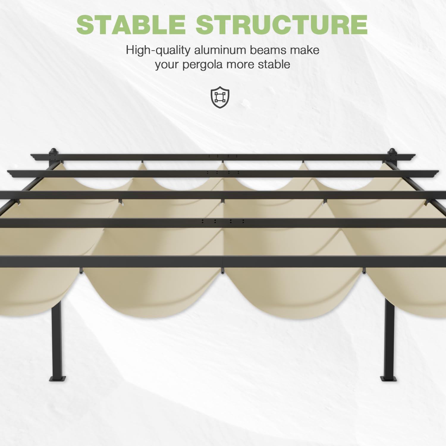 - 【WATERPROOF SUNSHADE】The pergola's shade cloth is made of high-quality polyester cloth, which has excellent waterproof and sun-proof properties and can effectively block UV rays. Additional straps enhance wind resistance and allow you to fold the awning for more sunlight exposure. Note: In severe weather conditions, please remove or retract the awning cover.
