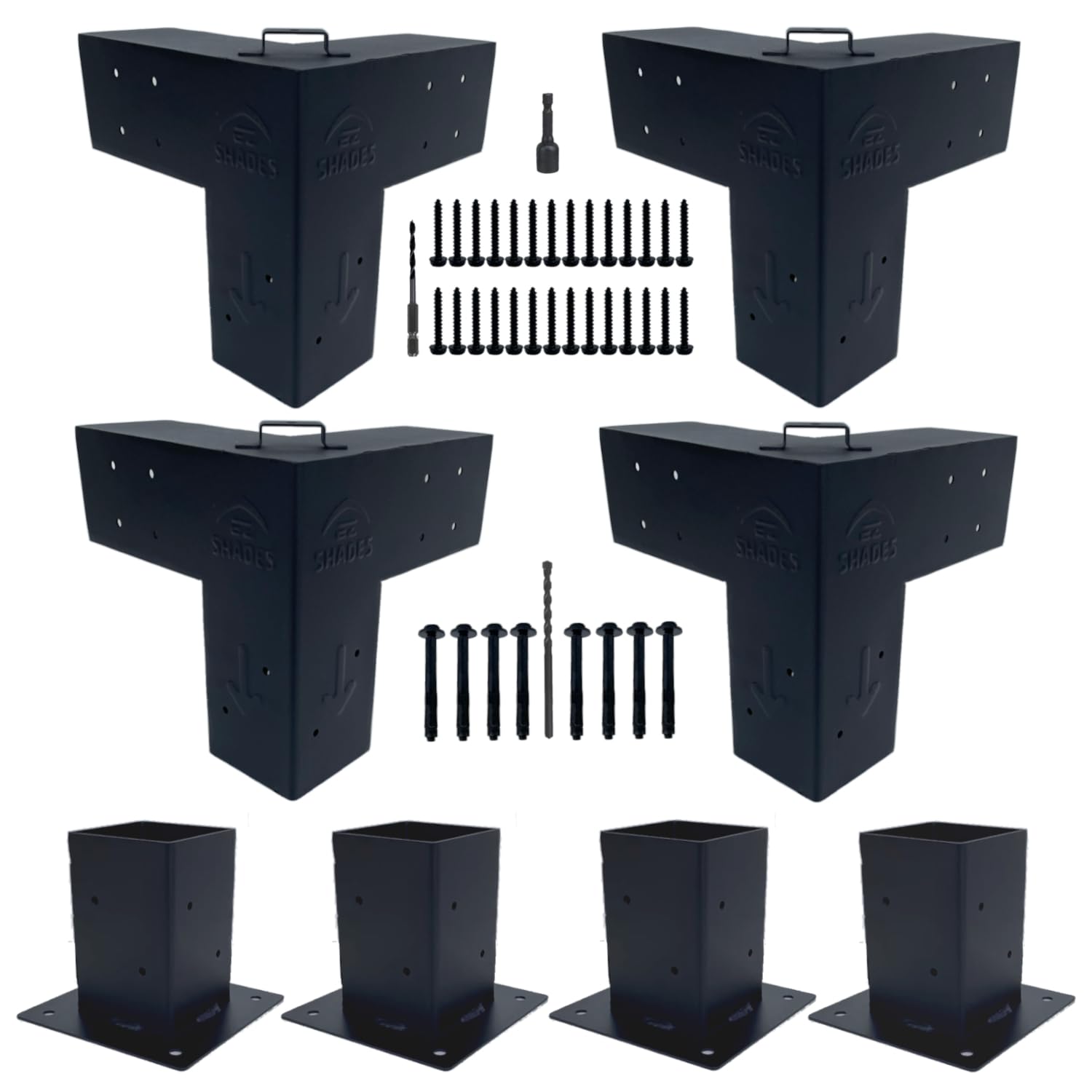 EZ Shades - DIY Pergola DIY Kit for 4x4 Lumber, (4) Black Steel Corners and (4) Post Base,Powder Coated Pergola Hardware with Accessories. (EZFSG2)