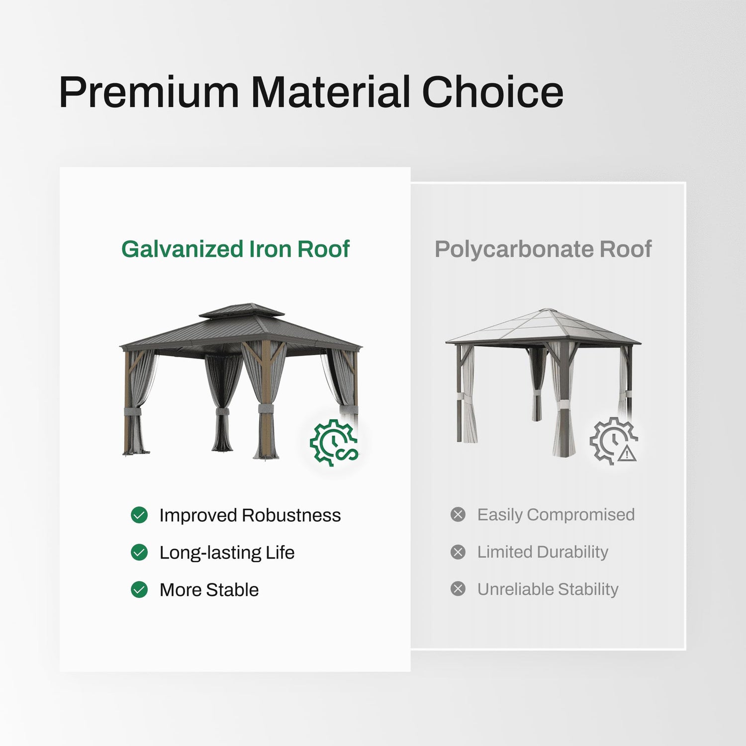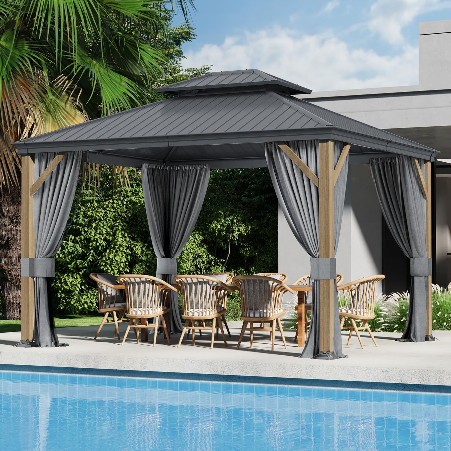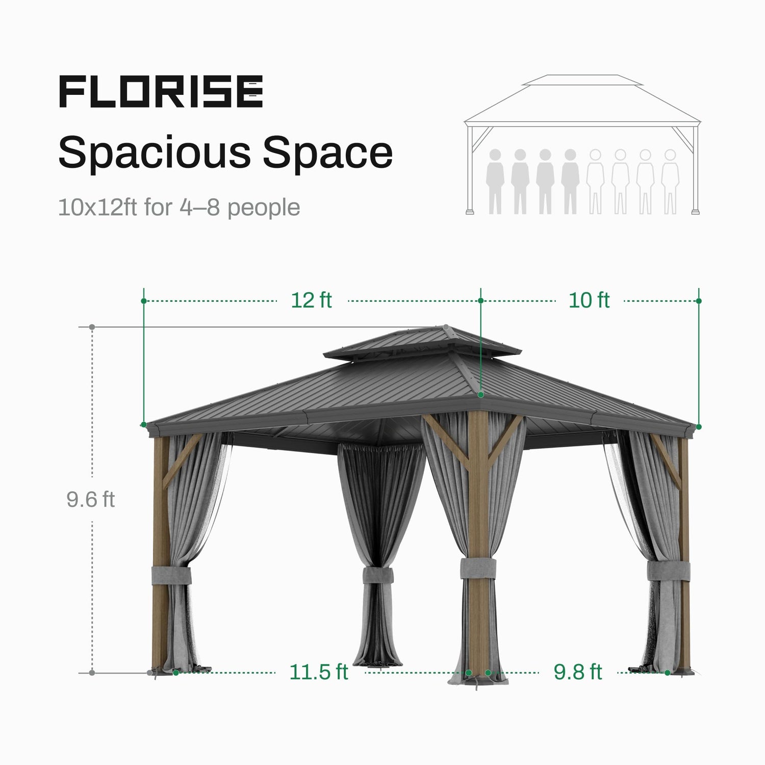 Florise 10x12 Ft Hardtop Gazebo, Heavy Duty Aluminum Frame Permanent Pavilion, Outdoor Double Roof Canopy, Curtain and Netting Included, Pergolas for Patios, Garden, Backyard, Lawns