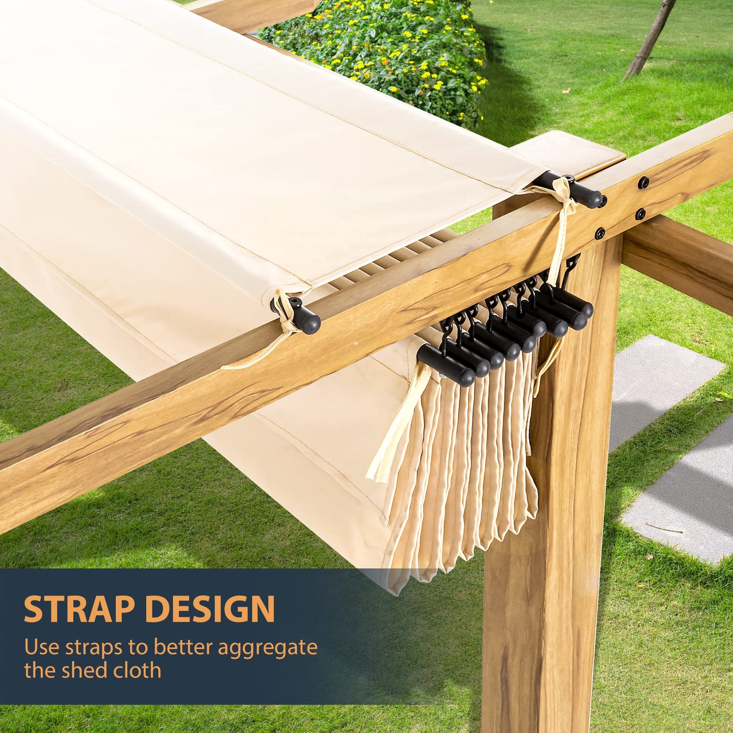 HAPPATIO 10' X 13' Wood-Grain Aluminum Pergola - Adjustable Sun Shade Canopy with Retractable Roof for Backyard, Deck, Patio, by The Pool(Beige)