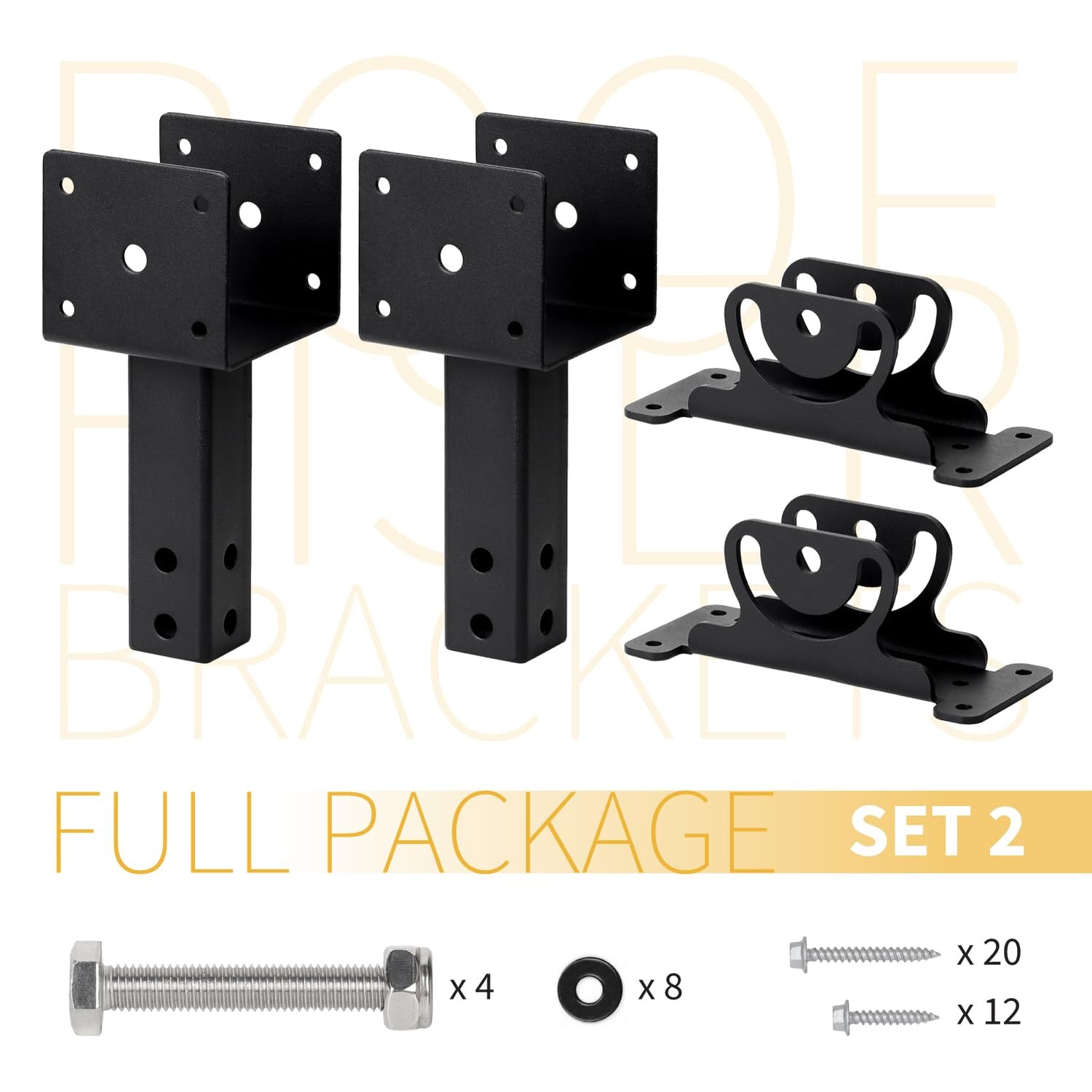 Heavy Duty Roof Riser Brackets Kit, Adjustable Roof Riser Beam Mount Brackets for Roof Pergola Gazebo (Black - Set 2)