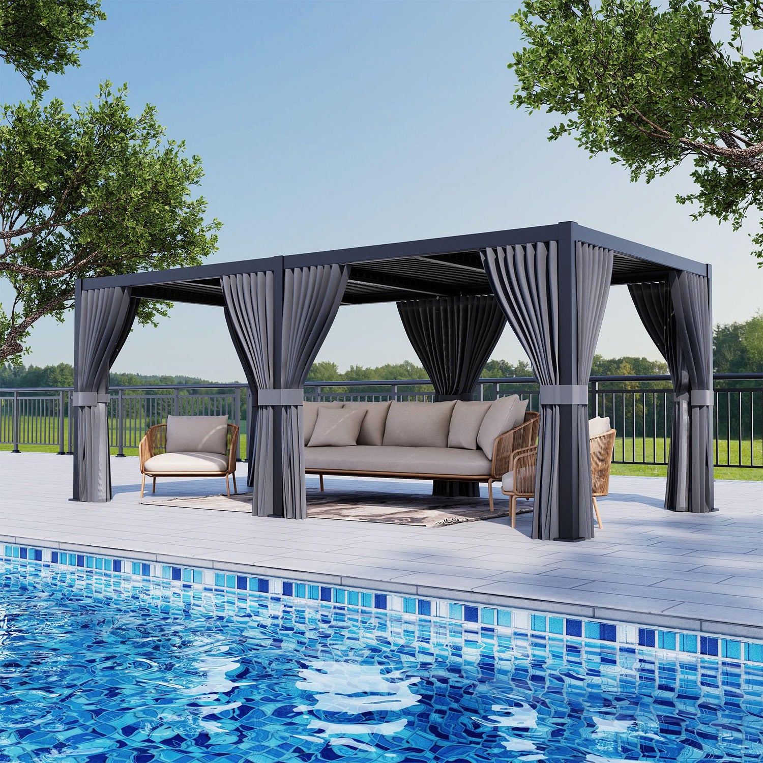 • 🎨【Privacy & Insect Protection】Aluminum pergola comes complete with removable curtains and zippered bug netting, providing flexible protection from wind, rain, and insects.