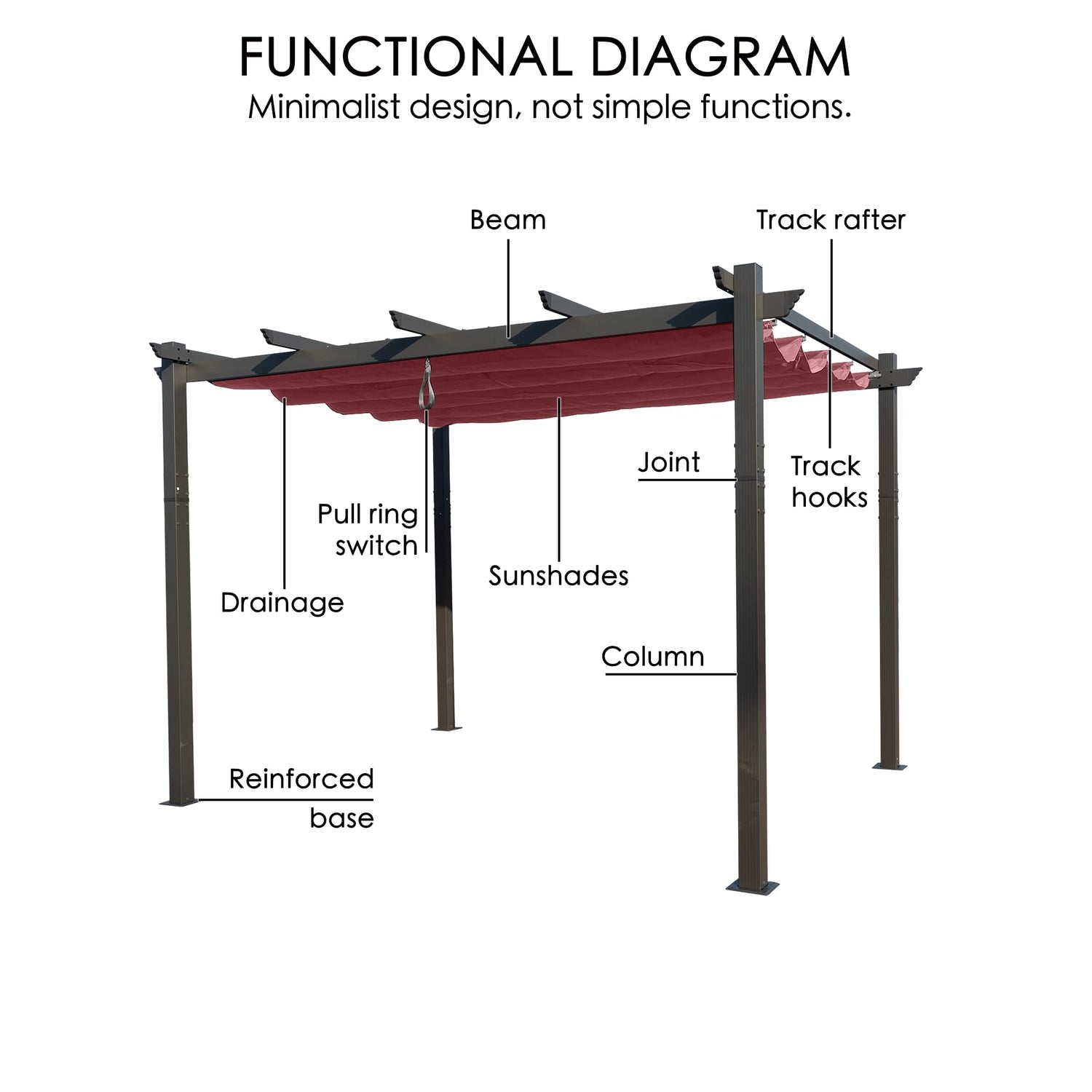 - ✅Sunshade Canopy - The sunshade canopy of this pergola is retractable, allowing you to adjust the amount of sunlight that filters through, providing a comfortable outdoor environment.