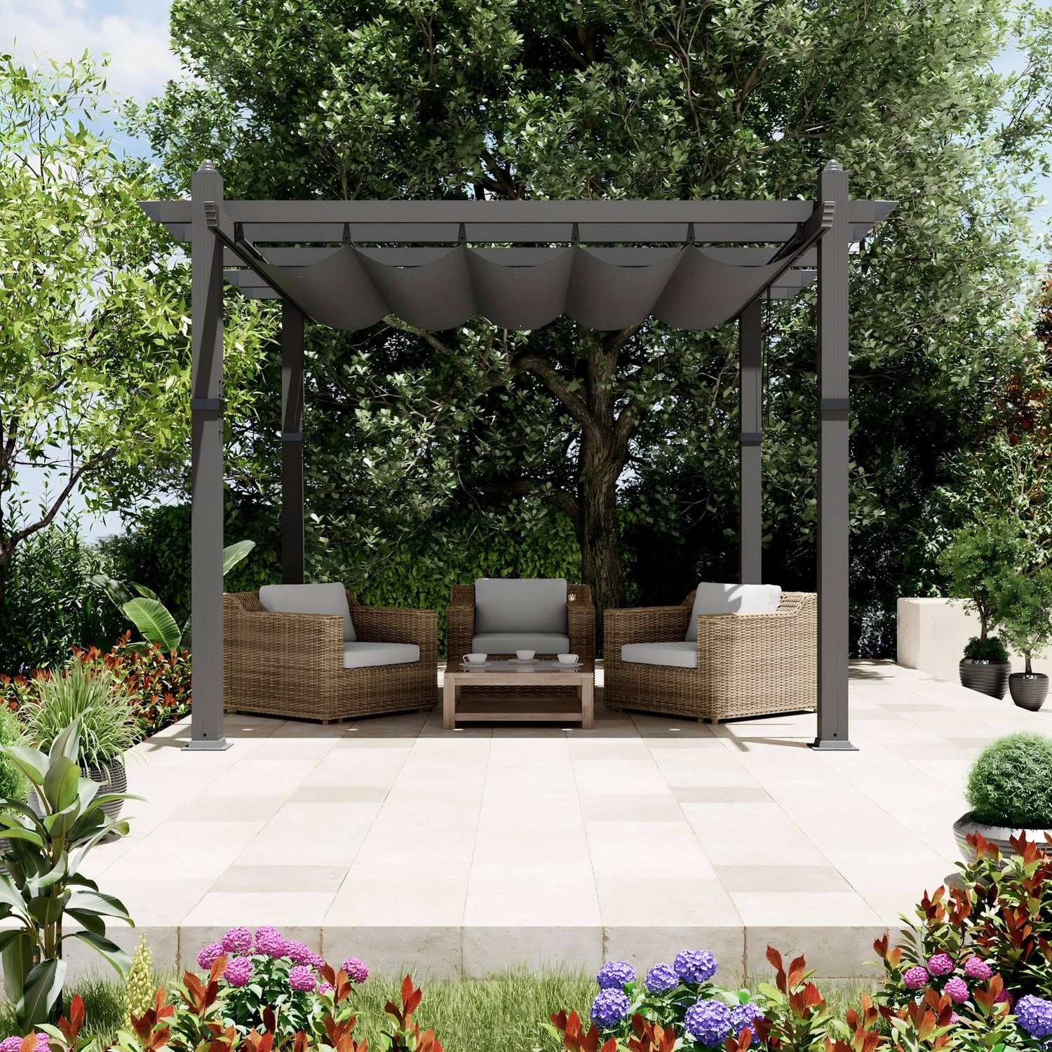 KYBOLT 10x10 Ft Modern Aluminum Pergola, Outdoor Pergola with Adjustable Canopy, Stable 4-Sided Base, Aluminum Gazebos for Backyard, Deck, Lawn - Gray