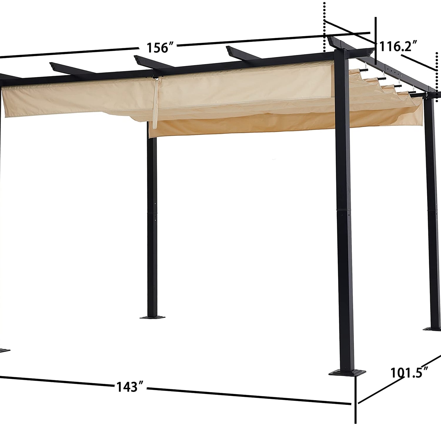 Luckyberry 10' X 13' Outdoor Retractable Pergola with Sun Shade Canopy Patio Metal Shelter for Garden Porch Beach Pavilion Grill Gazebo Modern Yard Grape Trellis Pergola, Beige