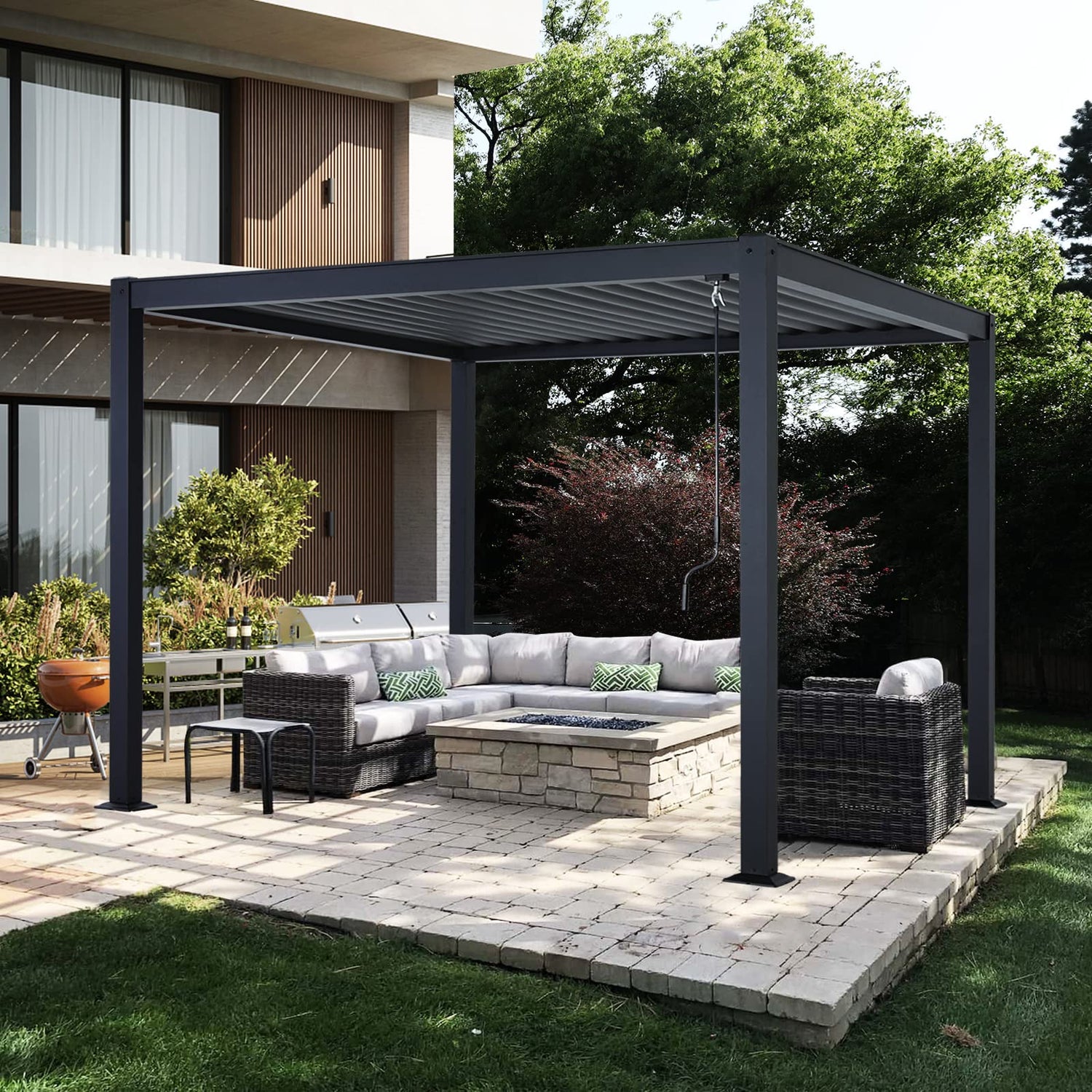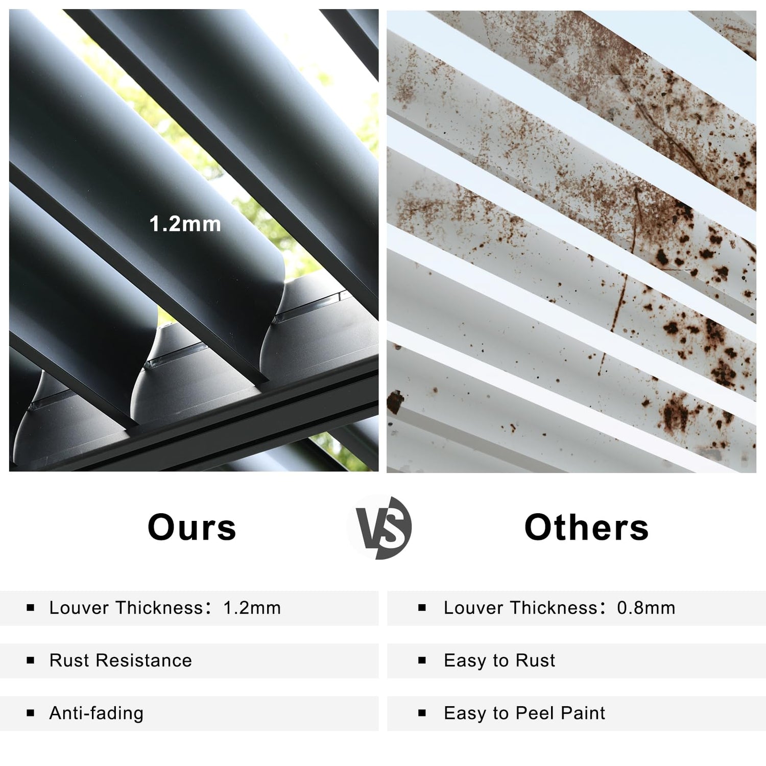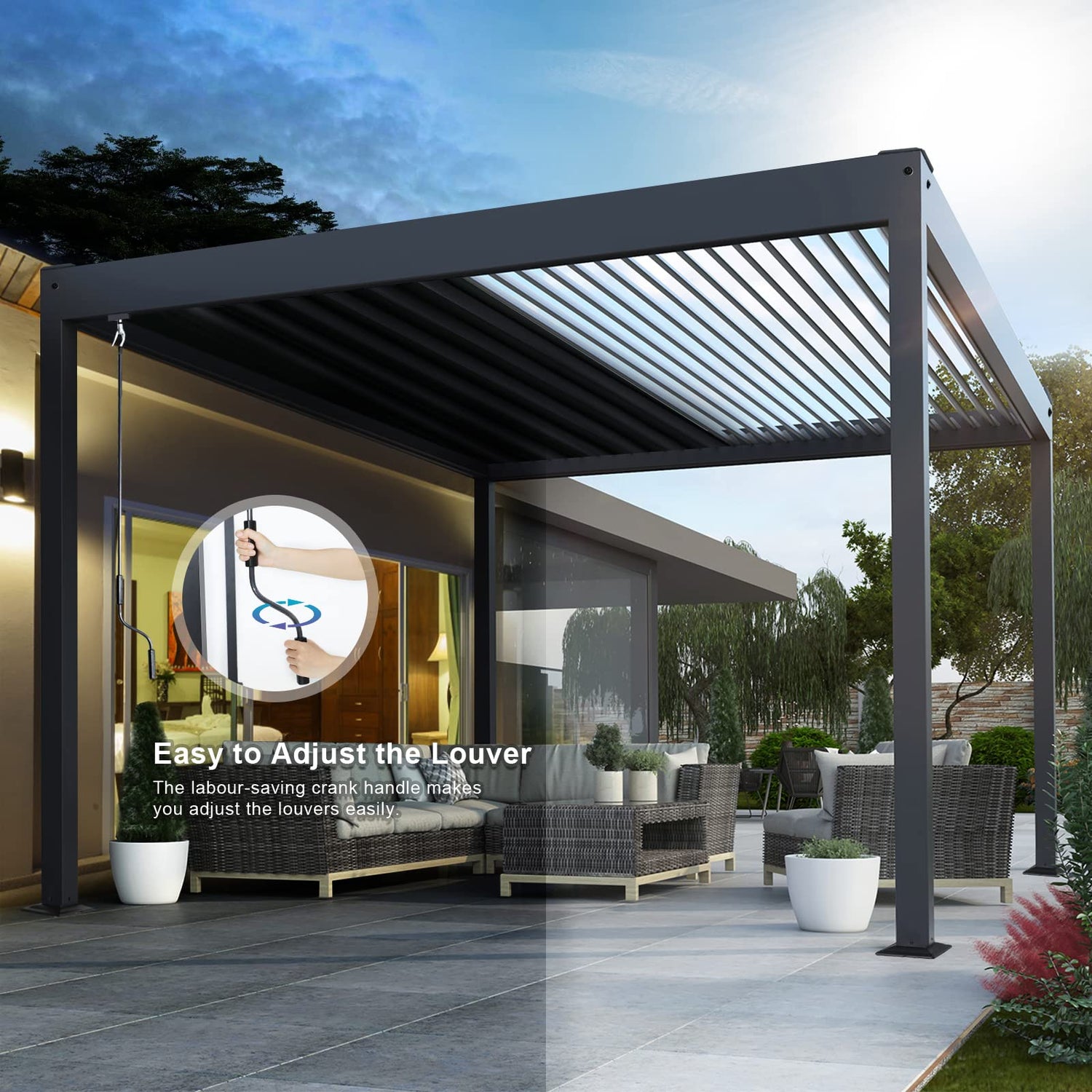 - 🔶Adjustable Louvered Roof: The adjustable 0°-90° angle design of the louvers ensures that you get the most suitable sun exposure for your needs. With the hand crank you can easily choose to enjoy the sun, prevent direct sunlight, and escape from the rain.