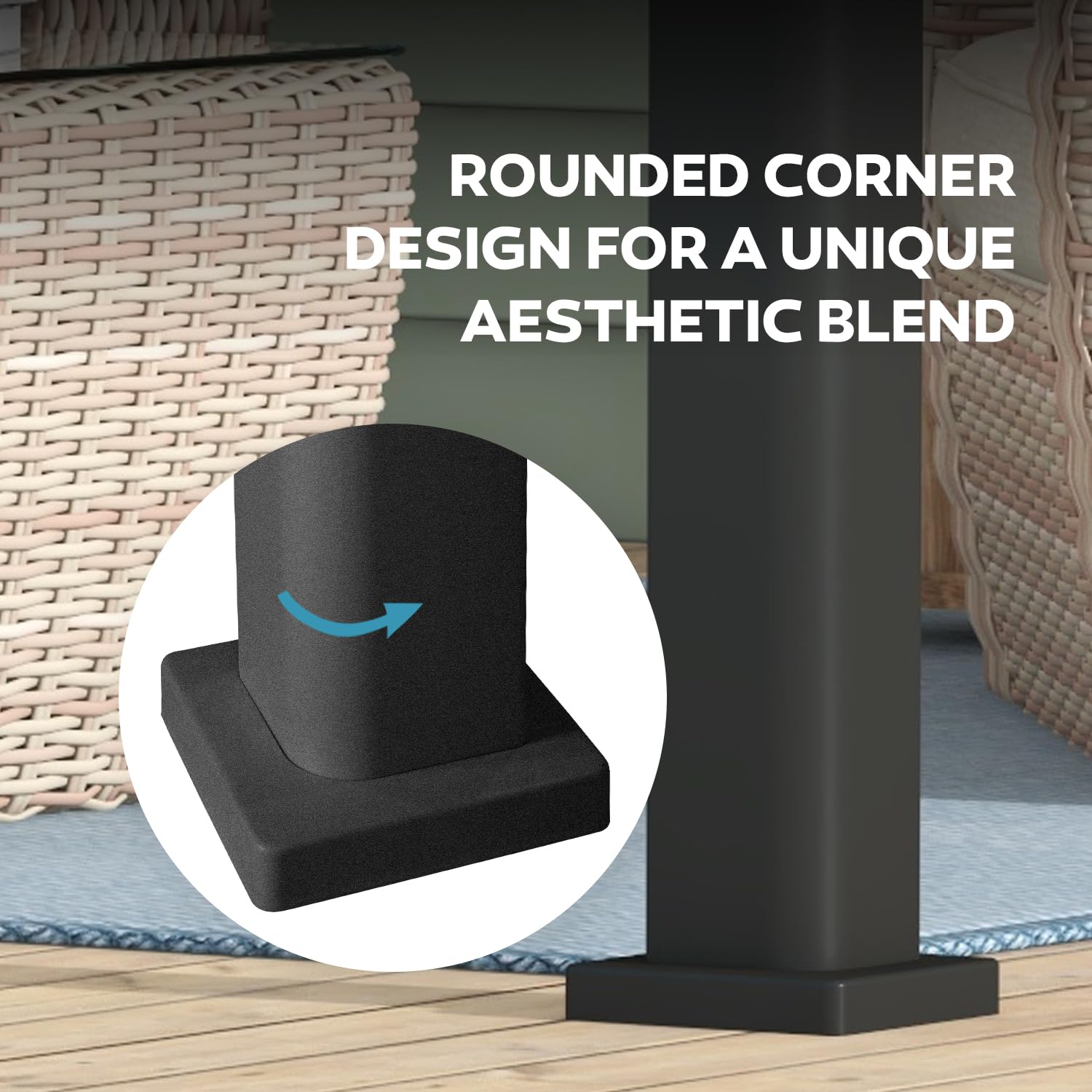 - Innovative Drainage System: Our patented Integrated Water Drainage feature is designed to efficiently channel rainwater to the columns and effectively drain it through the notches at the base of the rounded pillars, keeping your outdoor space clean and dry.