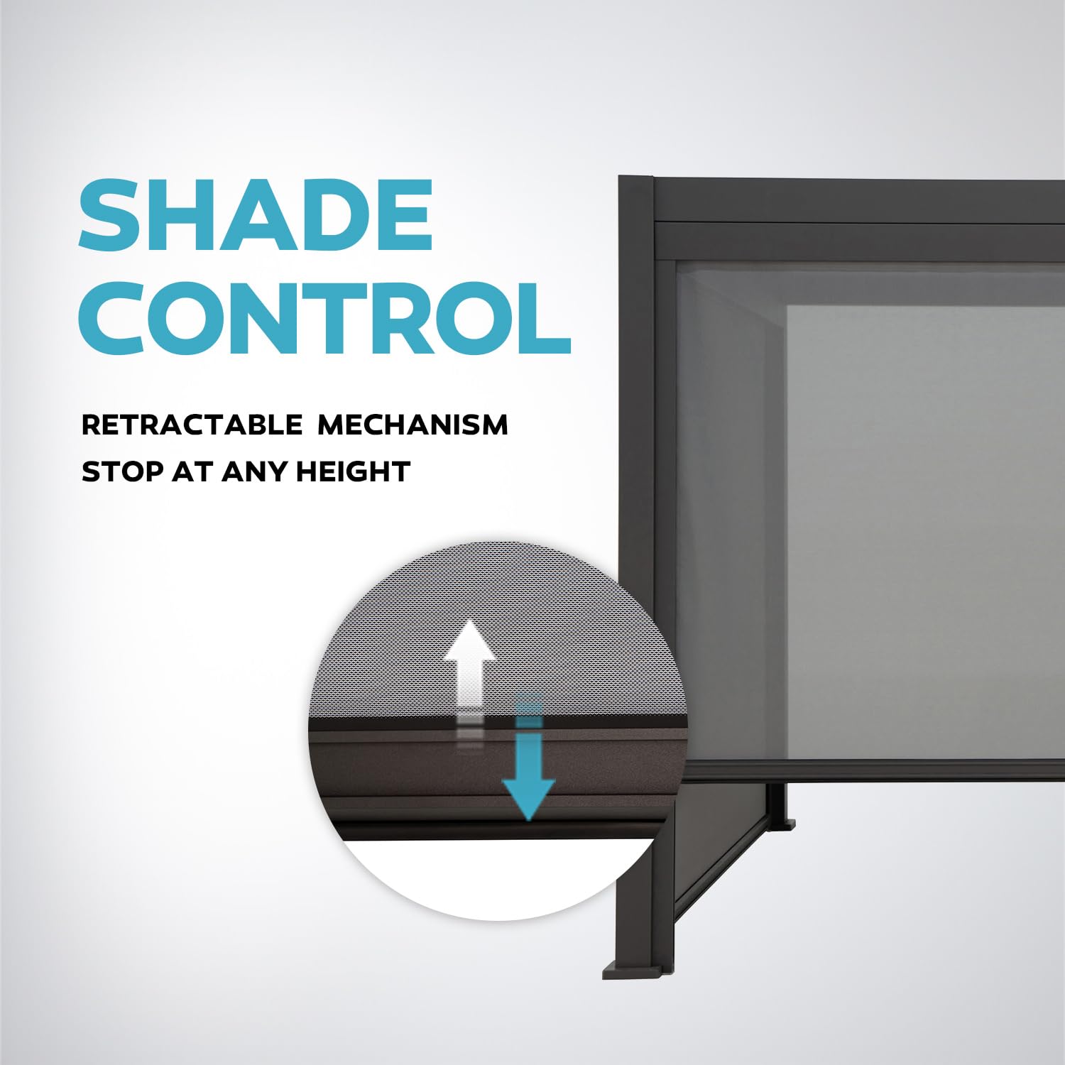 Mirador Accessory - 10Ft Side Adjustable Pull Down Screen for Mirador pergola 111S and 111DA, Enhance Outdoor Living Space with Pull-Down Sun Shade, Wind Block, UV Resistant, Charcoal, not pergola