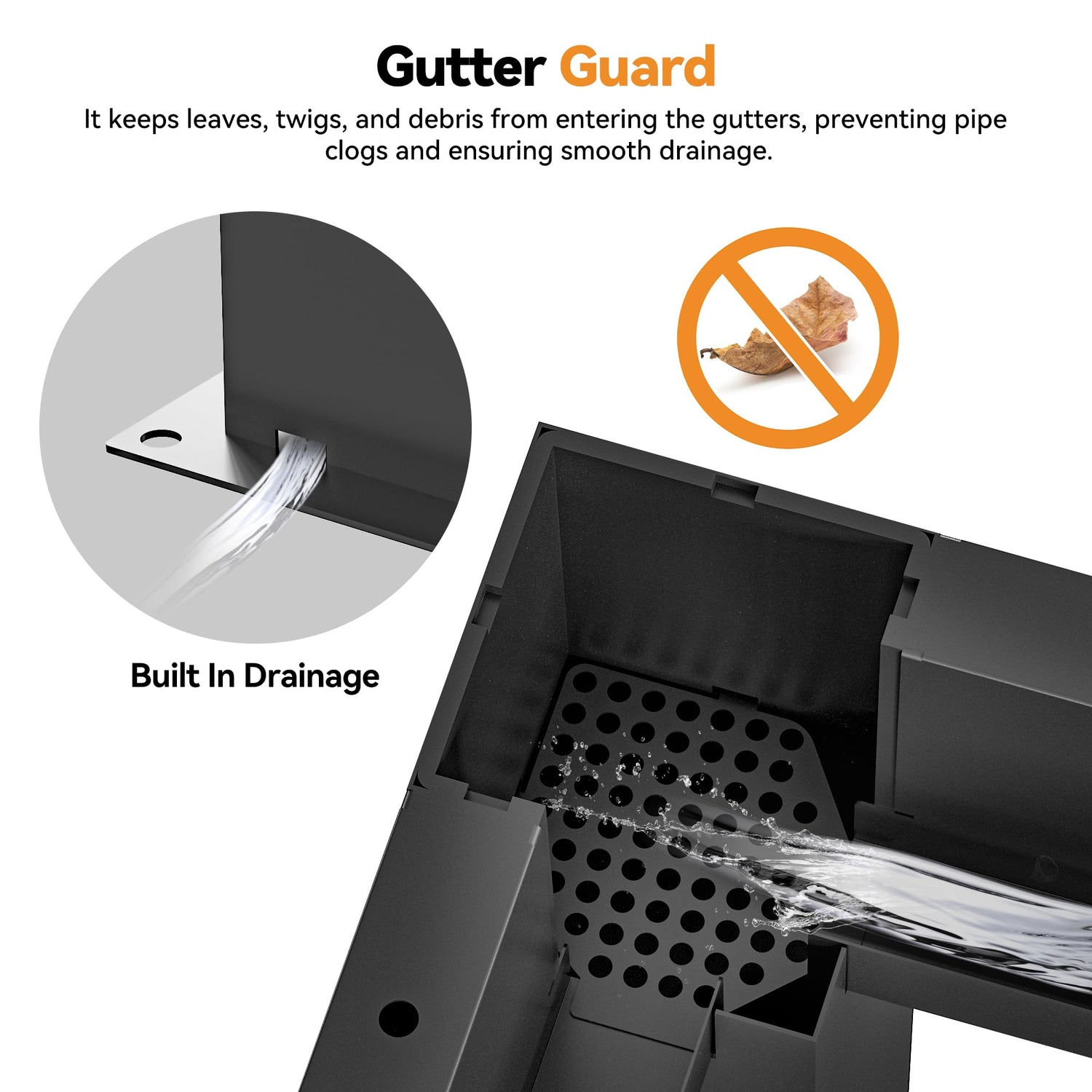 - [Advanced Drainage System & Gutter Guard] Stay dry effortlessly! Rainwater is efficiently channeled through integrated, concealed gutters within the frame, directed down the columns, and discreetly drained away. Engineered with concealed gutter channels and leaf-proof guards to prevent clogs, ensuring 100% debris-free drainage during heavy rain. No messy pooling on the roof – enjoy sheltered BBQs or gatherings even during summer showers.