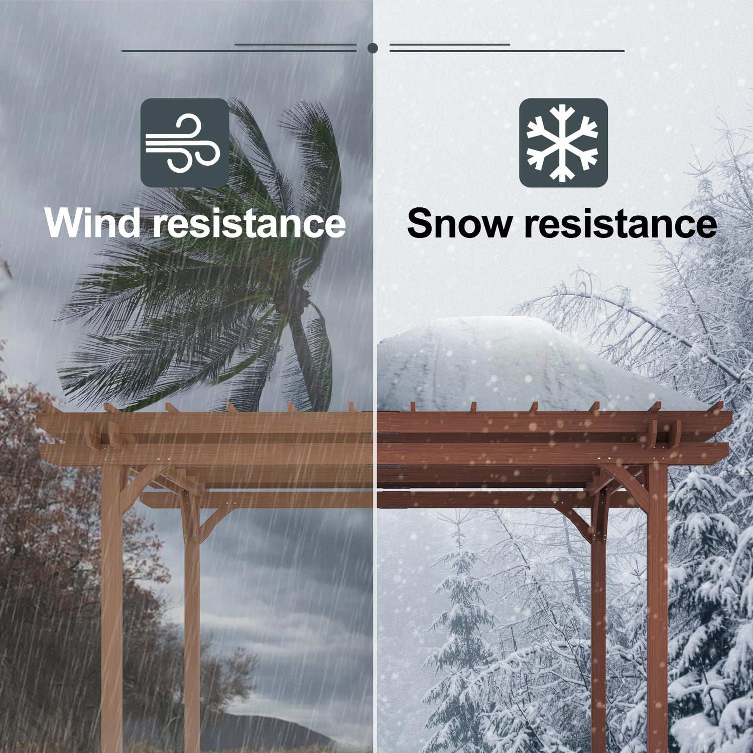 • Sturdy Wooden Frame: Constructed with a solid wood frame and coated for durability, our pergola is designed to withstand high winds and heavy snowfalls, ensuring long-lasting stability and safety.