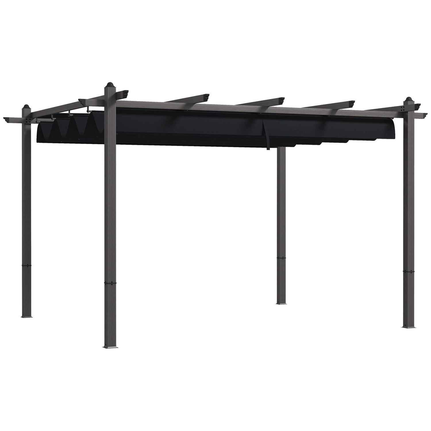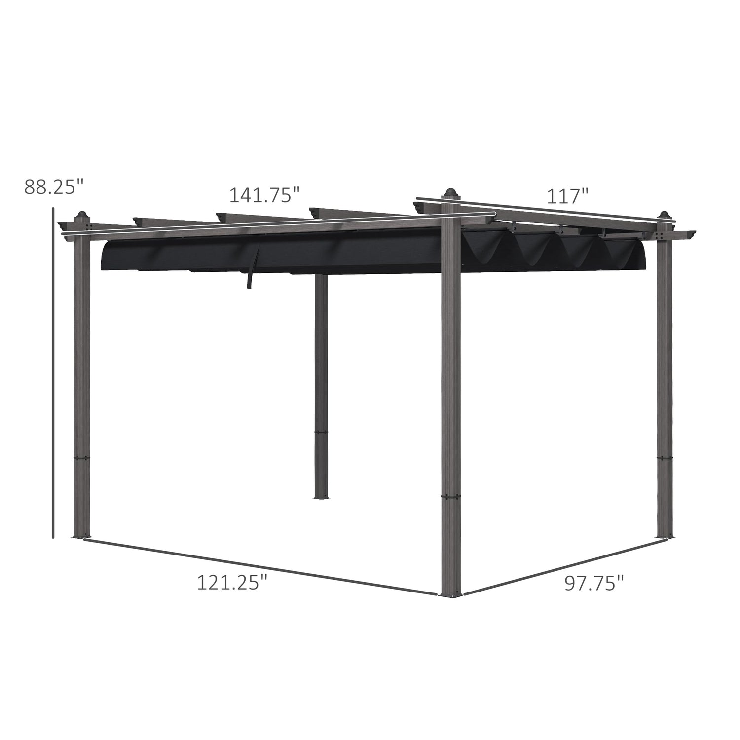 Outsunny 10' x 12' Retractable Pergola Canopy, Wood Grain Aluminum Pergola, Outdoor Sun Shade Shelter for Grill, Garden, Patio, Backyard, Deck, Gray